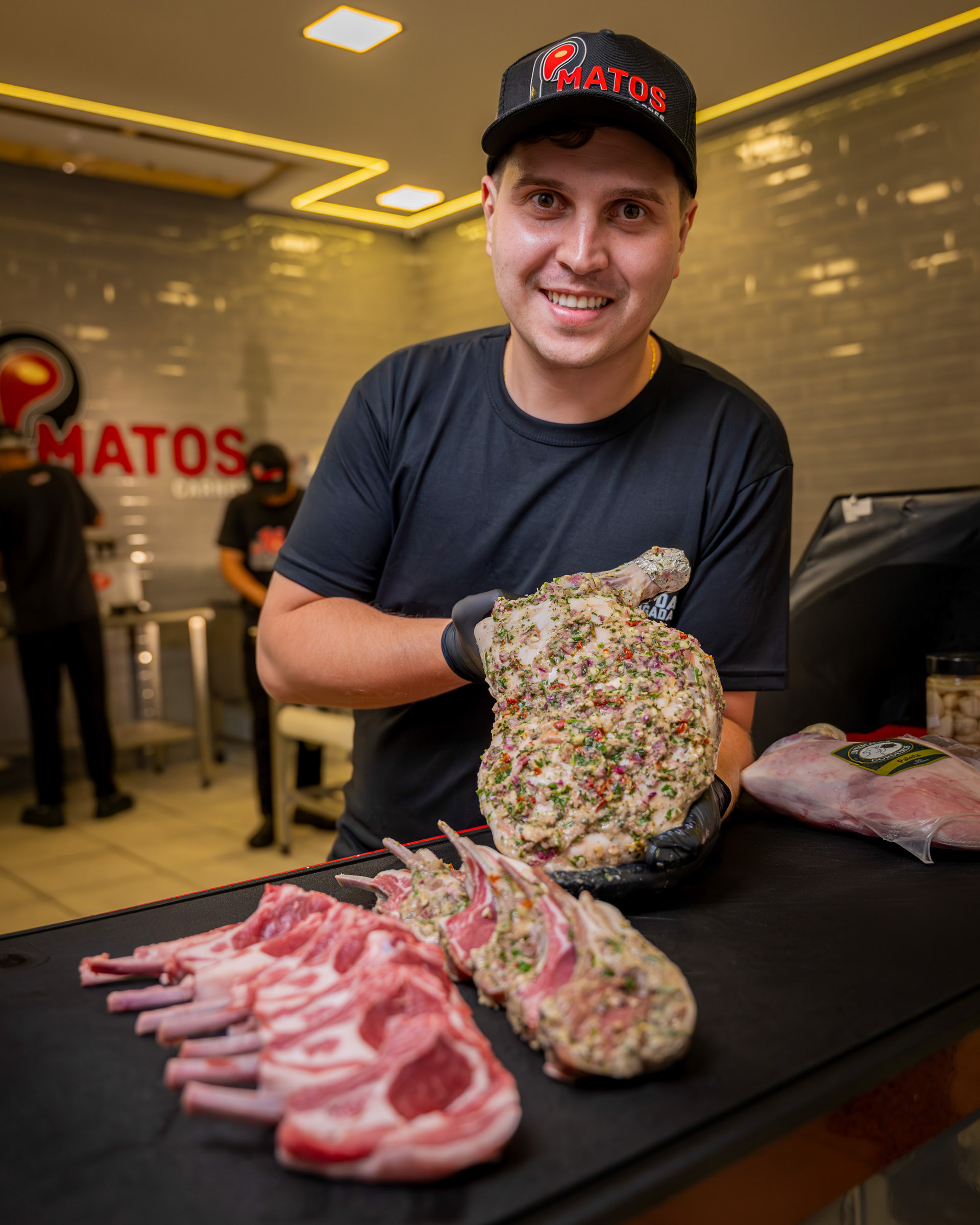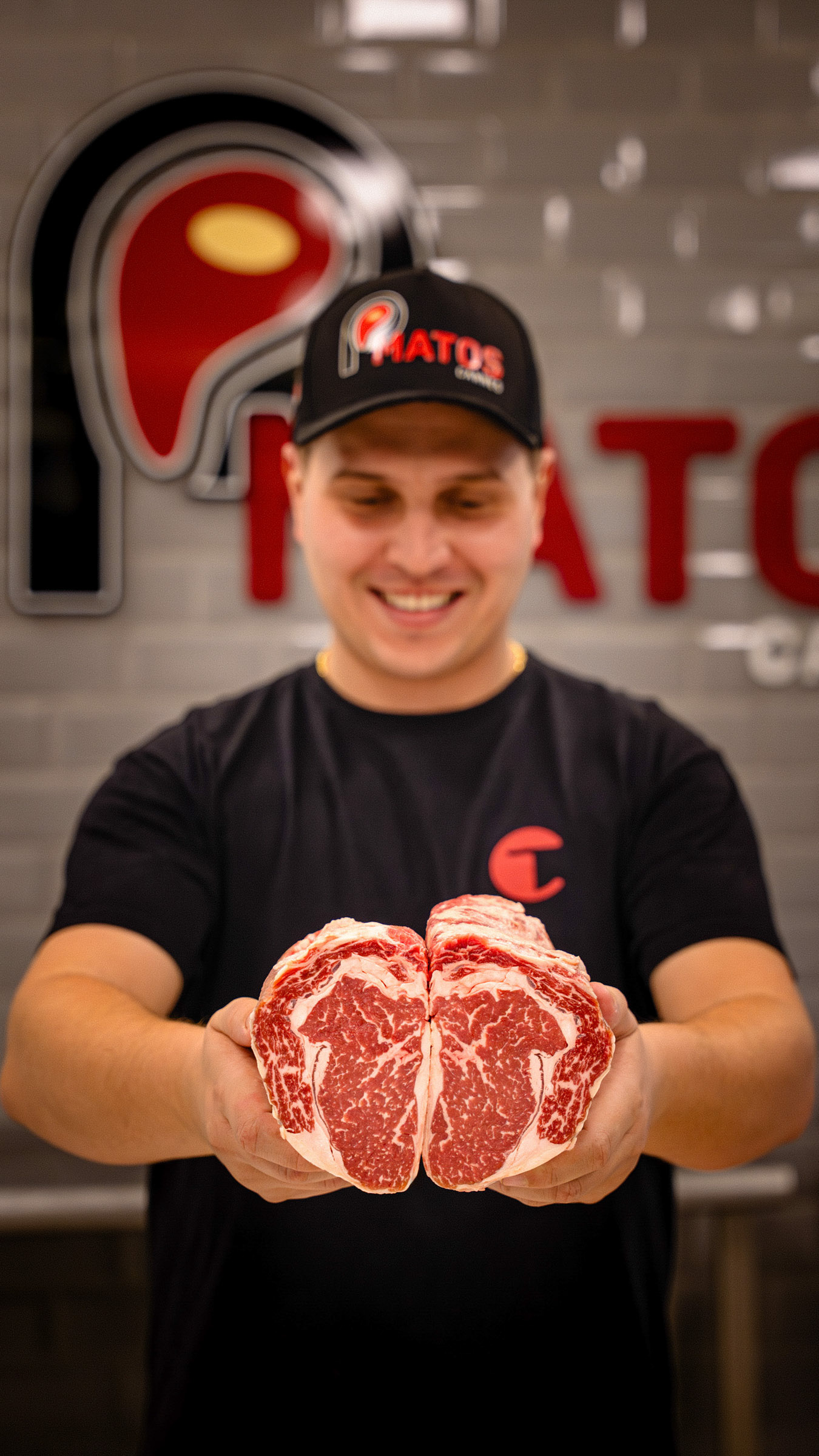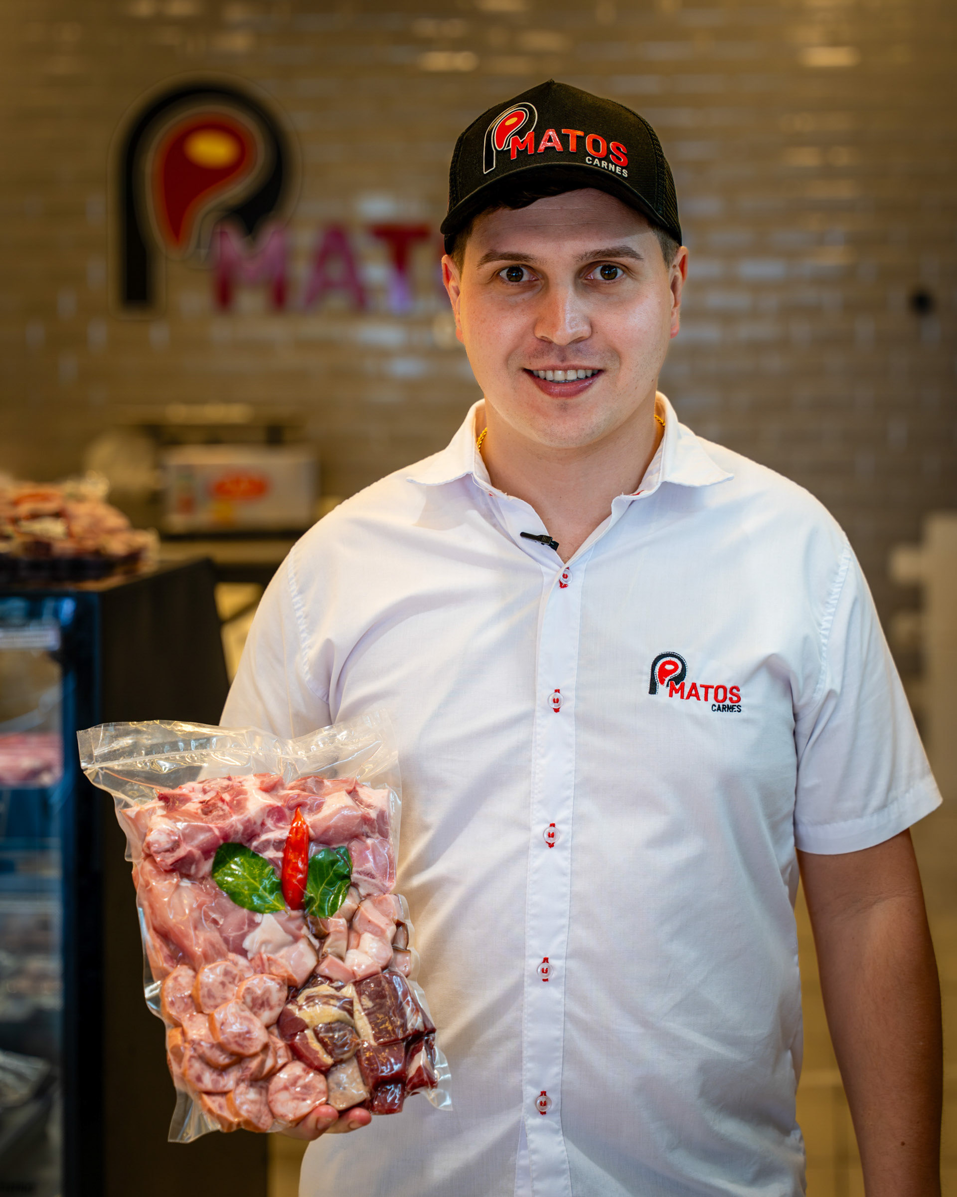 Este álbum é um mergulho na excelência do P. Matos Carnes, buscando traduzir em imagens a curadoria rigorosa, o alto padrão de higiene e a diversidade de produtos premium oferecidos. O objetivo foi estabelecer a credibilidade da marca, mostrando a qualidade da matéria-prima e a expertise por trás do balcão. A fotografia priorizou a textura e o frescor da matéria-prima. Registros de close-up de cortes especiais, como o Carré e o bacalhau, enfatizam a riqueza visual e o marmoreio da carne. Além disso, as imagens documentaram a transparência do processo, desde a moagem e o tempero in loco até a produção dos patties de hambúrguer. O uso proeminente de luvas e equipamentos de segurança comunica diretamente o compromisso inegociável com a higiene na manipulação dos alimentos. A humanização da marca foi um foco essencial. Os retratos da equipe, sorrindo e apresentando o produto (como os Kits Feijoada embalados a vácuo), transmitem confiança e paixão pela gastronomia. O branding discreto (uniformes, sacolas, logo do açougue) garante a coesão visual, posicionando o P. Matos como uma referência em produtos que vão além do açougue tradicional. Fotografia Gastronômica Institucional que prova que o P. Matos Carnes não é apenas um ponto de venda, mas um centro de curadoria onde a qualidade da matéria-prima e a meticulosidade do preparo artesanal são documentadas em cada etapa.
