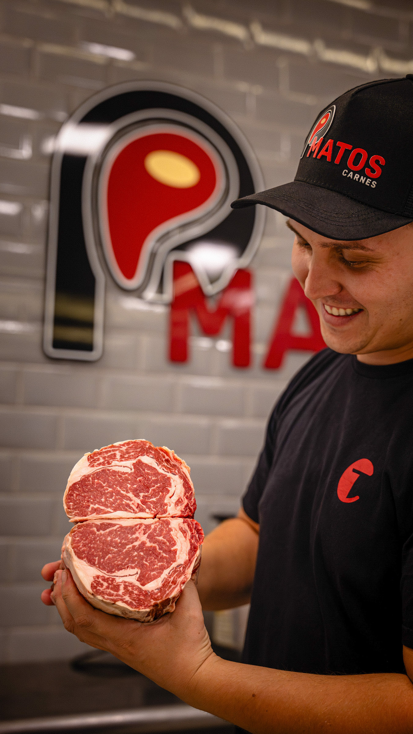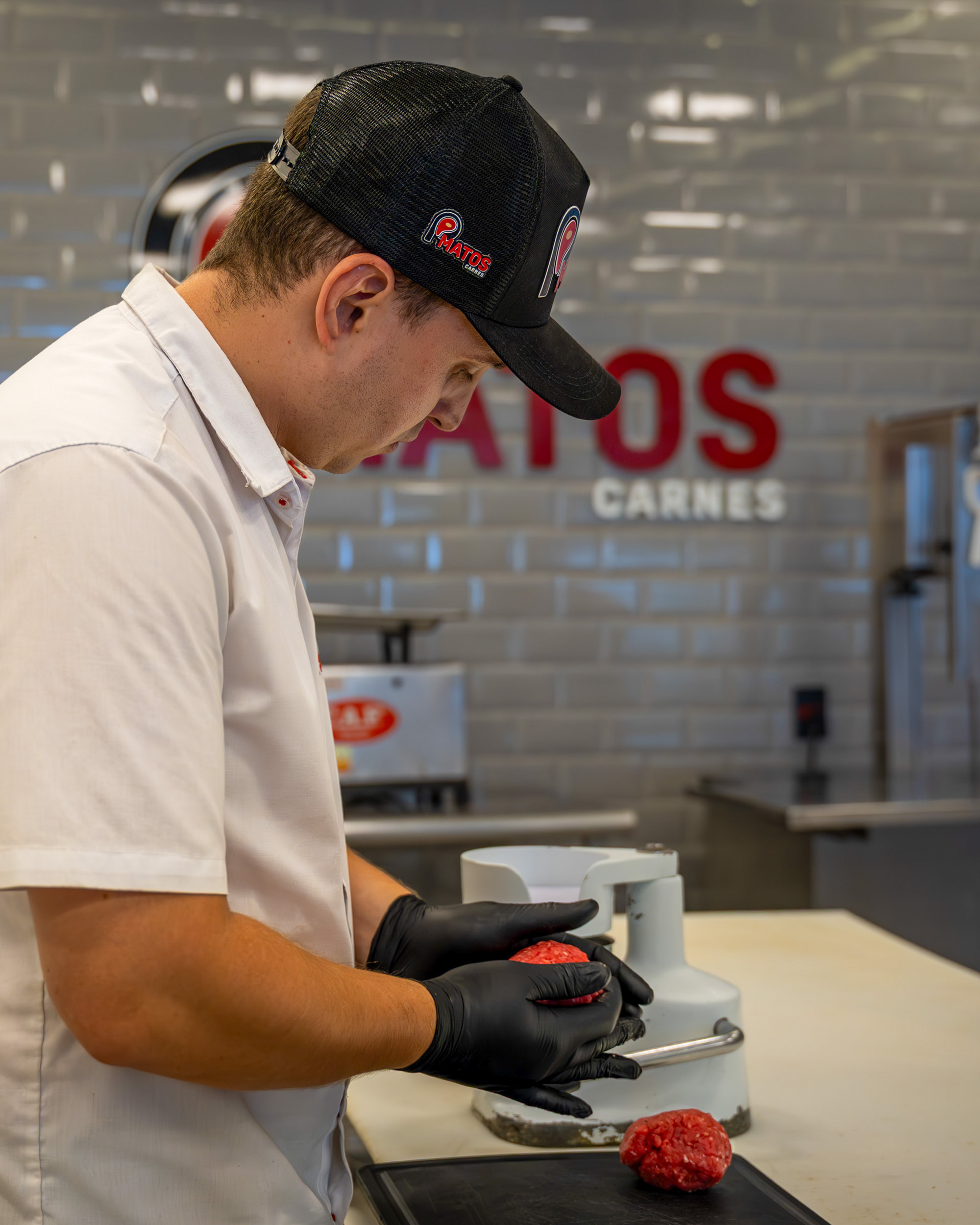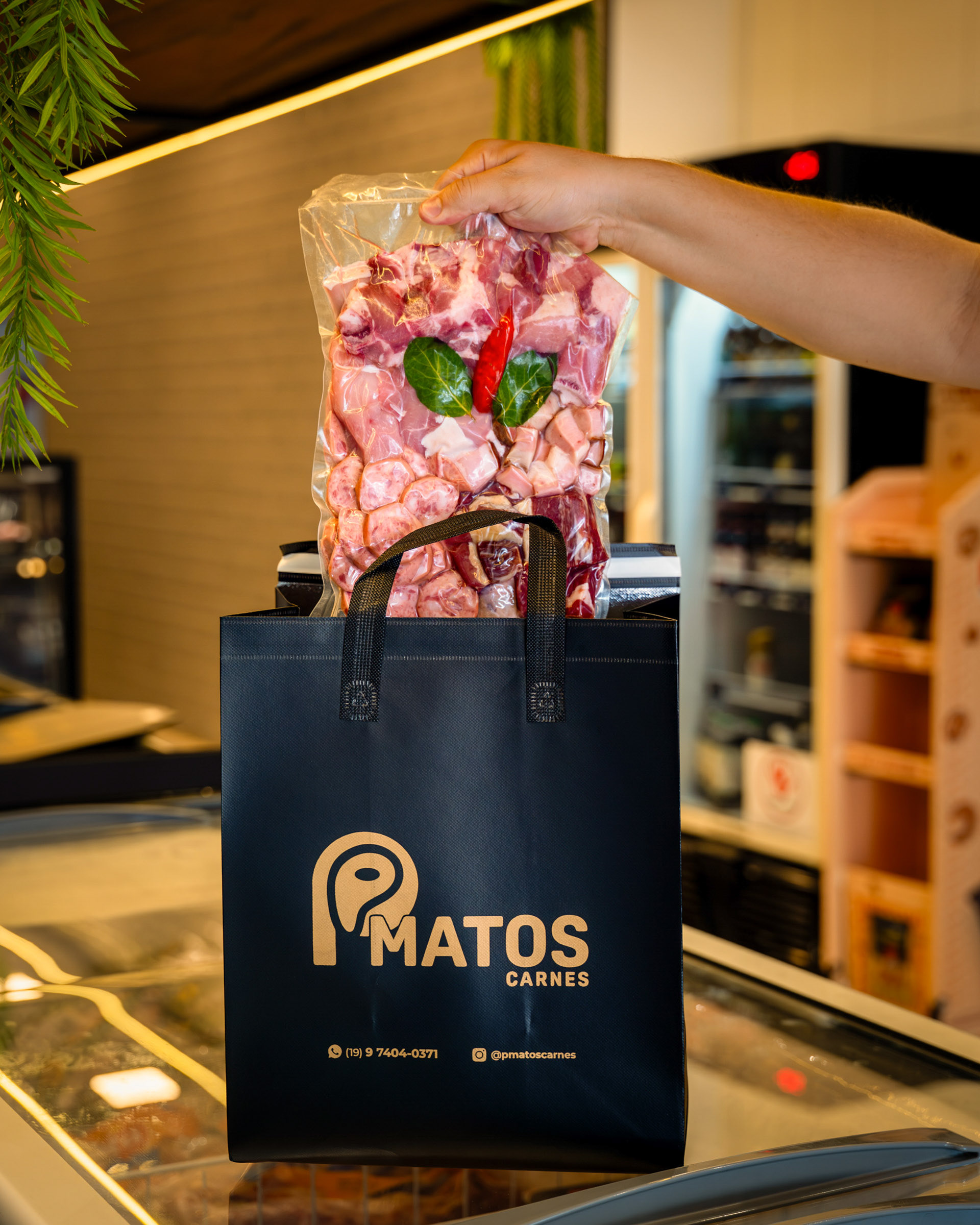 Este álbum é um mergulho na excelência do P. Matos Carnes, buscando traduzir em imagens a curadoria rigorosa, o alto padrão de higiene e a diversidade de produtos premium oferecidos. O objetivo foi estabelecer a credibilidade da marca, mostrando a qualidade da matéria-prima e a expertise por trás do balcão. A fotografia priorizou a textura e o frescor da matéria-prima. Registros de close-up de cortes especiais, como o Carré e o bacalhau, enfatizam a riqueza visual e o marmoreio da carne. Além disso, as imagens documentaram a transparência do processo, desde a moagem e o tempero in loco até a produção dos patties de hambúrguer. O uso proeminente de luvas e equipamentos de segurança comunica diretamente o compromisso inegociável com a higiene na manipulação dos alimentos. A humanização da marca foi um foco essencial. Os retratos da equipe, sorrindo e apresentando o produto (como os Kits Feijoada embalados a vácuo), transmitem confiança e paixão pela gastronomia. O branding discreto (uniformes, sacolas, logo do açougue) garante a coesão visual, posicionando o P. Matos como uma referência em produtos que vão além do açougue tradicional. Fotografia Gastronômica Institucional que prova que o P. Matos Carnes não é apenas um ponto de venda, mas um centro de curadoria onde a qualidade da matéria-prima e a meticulosidade do preparo artesanal são documentadas em cada etapa.