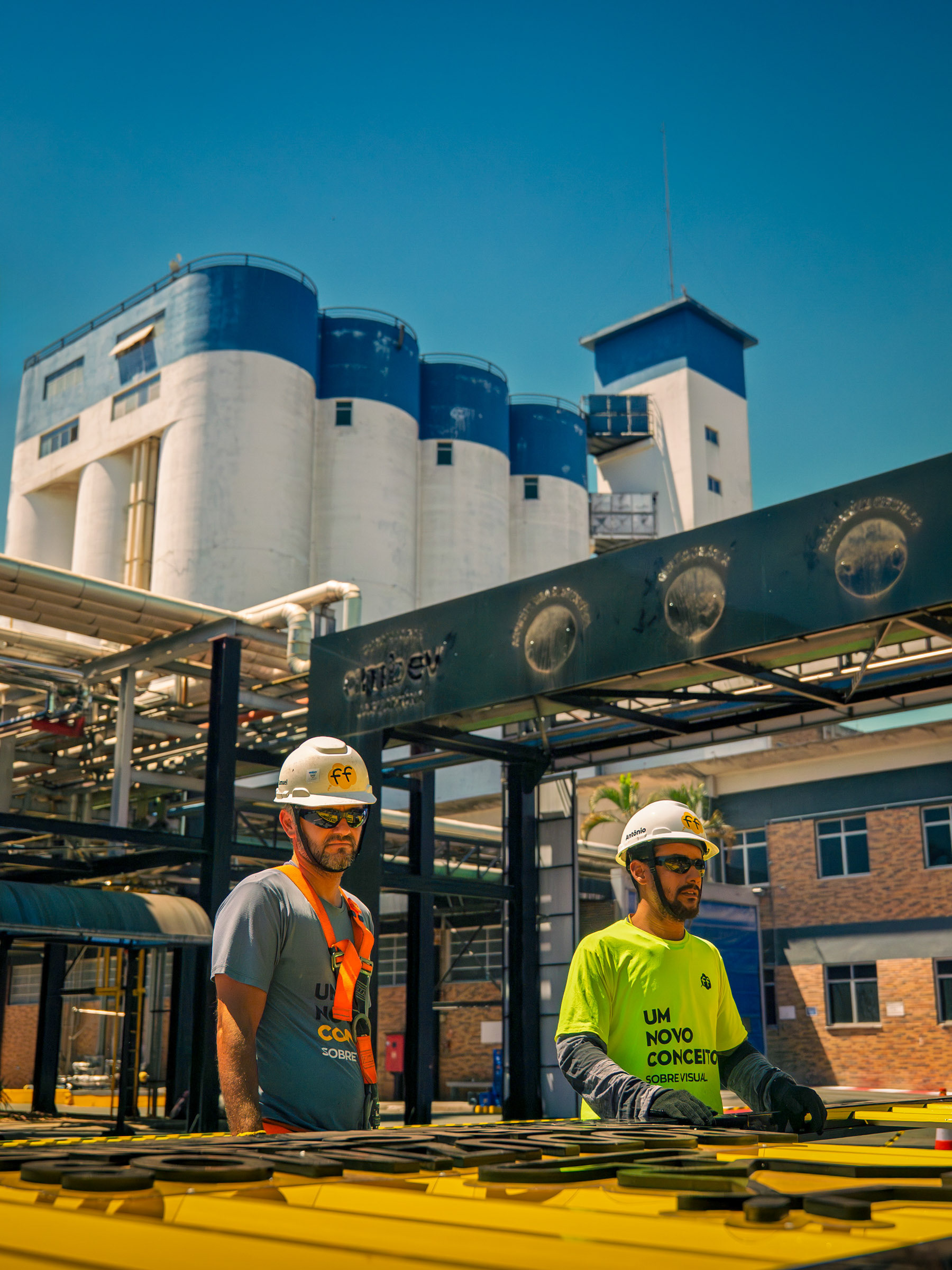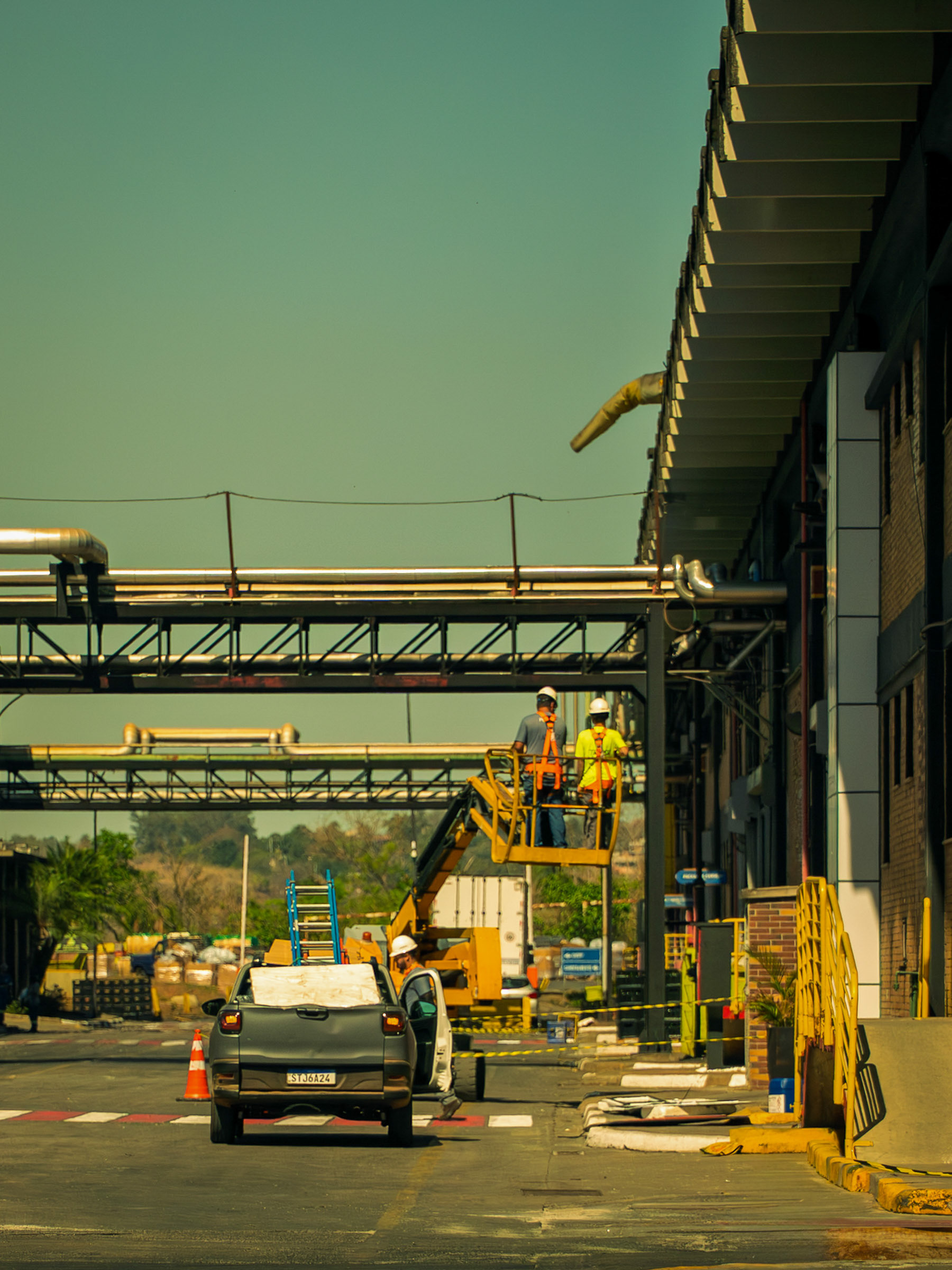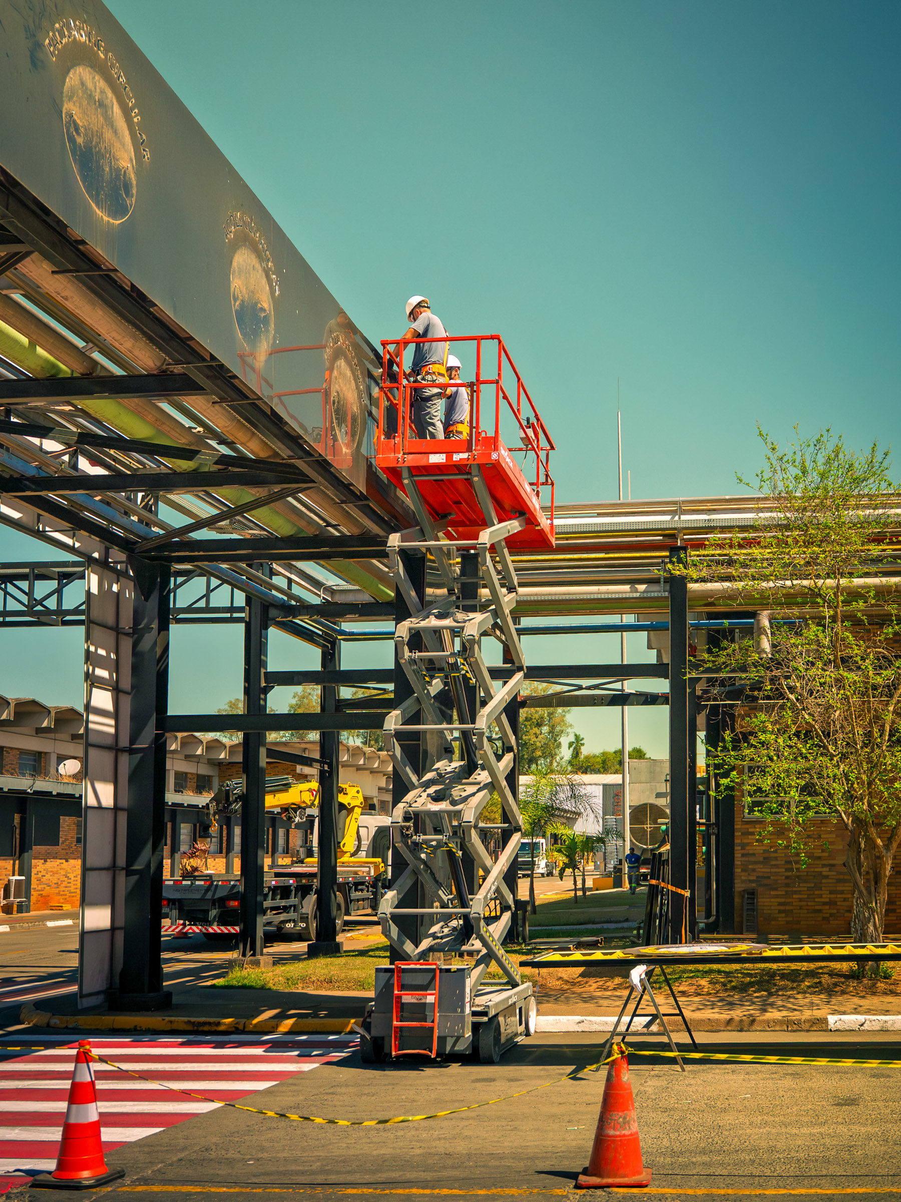 A instalação dos novos portais da Ambev exigiu uma fotografia de cobertura que documentasse não apenas a estrutura final, mas o rigor do processo operacional e a segurança da equipe Piffer em um ambiente industrial de alta exigência. O objetivo era traduzir em imagem a excelência na execução, o domínio da técnica e o profissionalismo do time. A cobertura focou em capturar o ritmo de trabalho e a escala industrial. As fotos utilizam close-ups nos colaboradores, devidamente equipados com EPIs, enfatizando a concentração, o trabalho em equipe e a seriedade da instalação. O uso estratégico da luz natural e dos ângulos altos (plataformas elevatórias) confere um visual robusto e autêntico à narrativa. Foi crucial registrar a manipulação das peças complexas (como as garrafas Stella Artois e Original em ACM e acrílico incolor com impressão invertida) durante o içamento e a fixação. As imagens mostram a aplicação do efeito flutuante com fita de LED nas bordas das garrafas, destacando o know-how da Piffer na união de materiais de alto padrão (ACM, acrílico, LED) em ambientes industriais. Cobertura Industrial que atesta a capacidade de execução da Piffer, demonstrando que a transformação de um portal em uma declaração de marca envolve planejamento, técnica, segurança e uma equipe especializada em lidar com desafios de infraestrutura complexa.