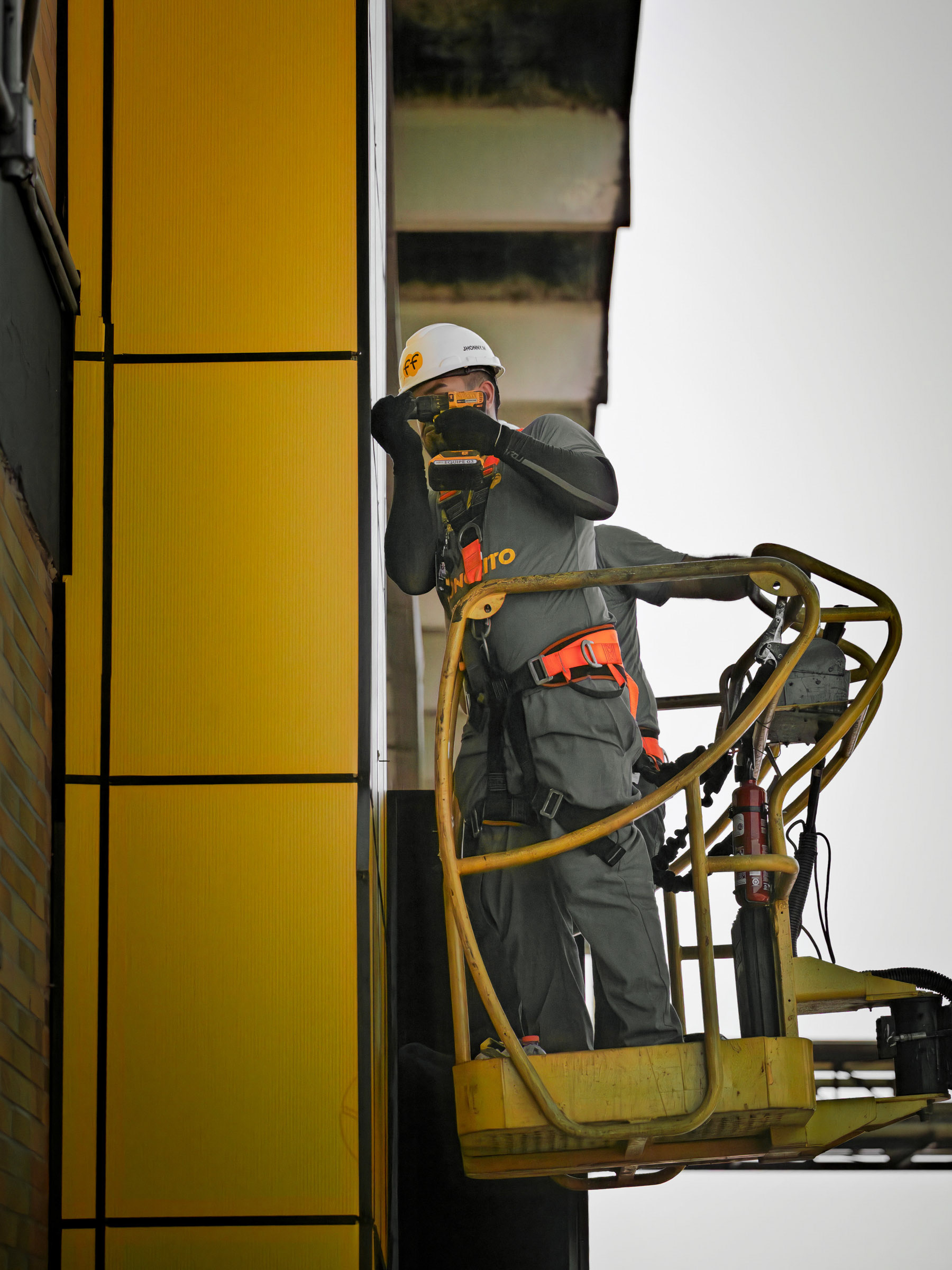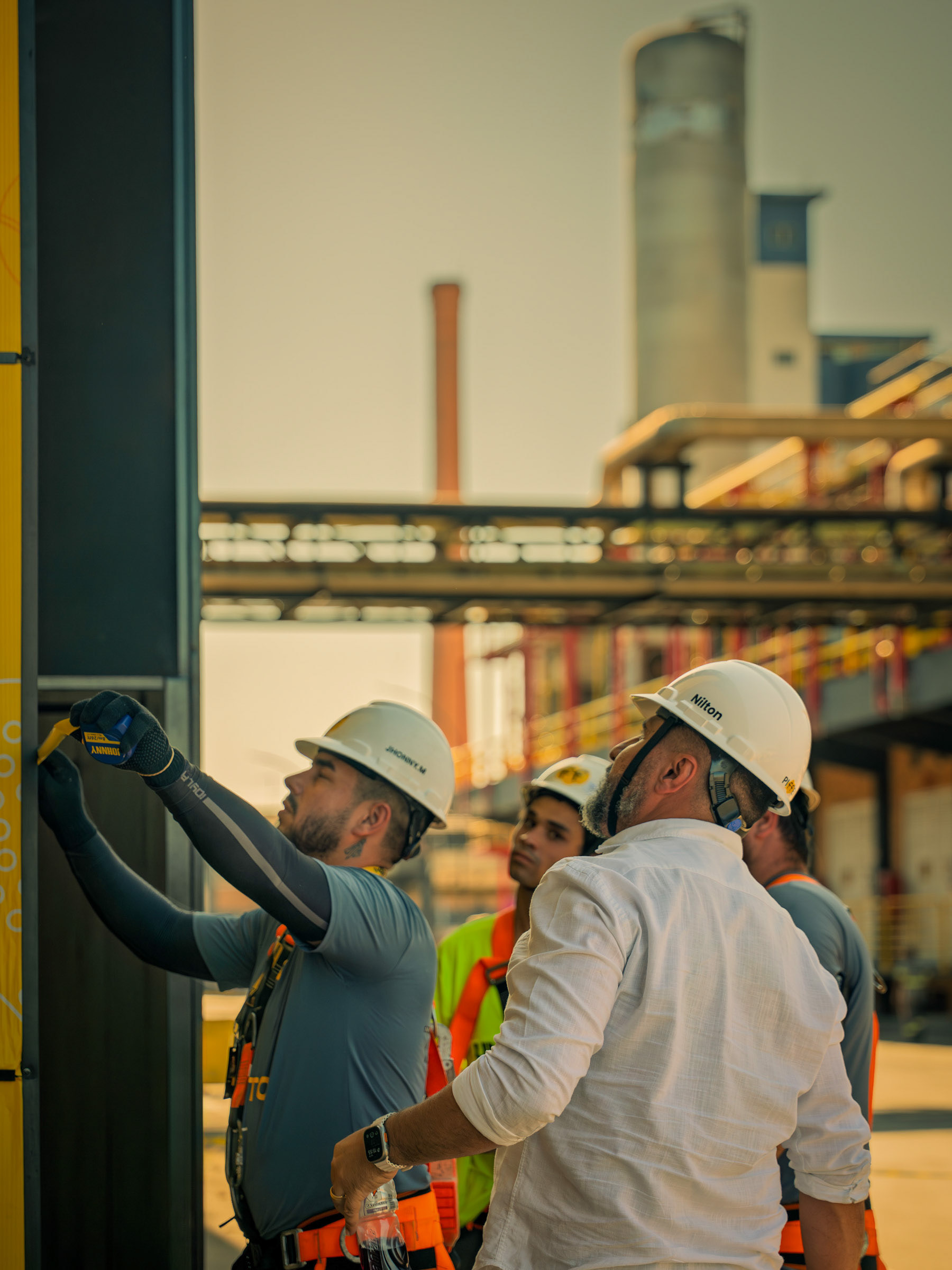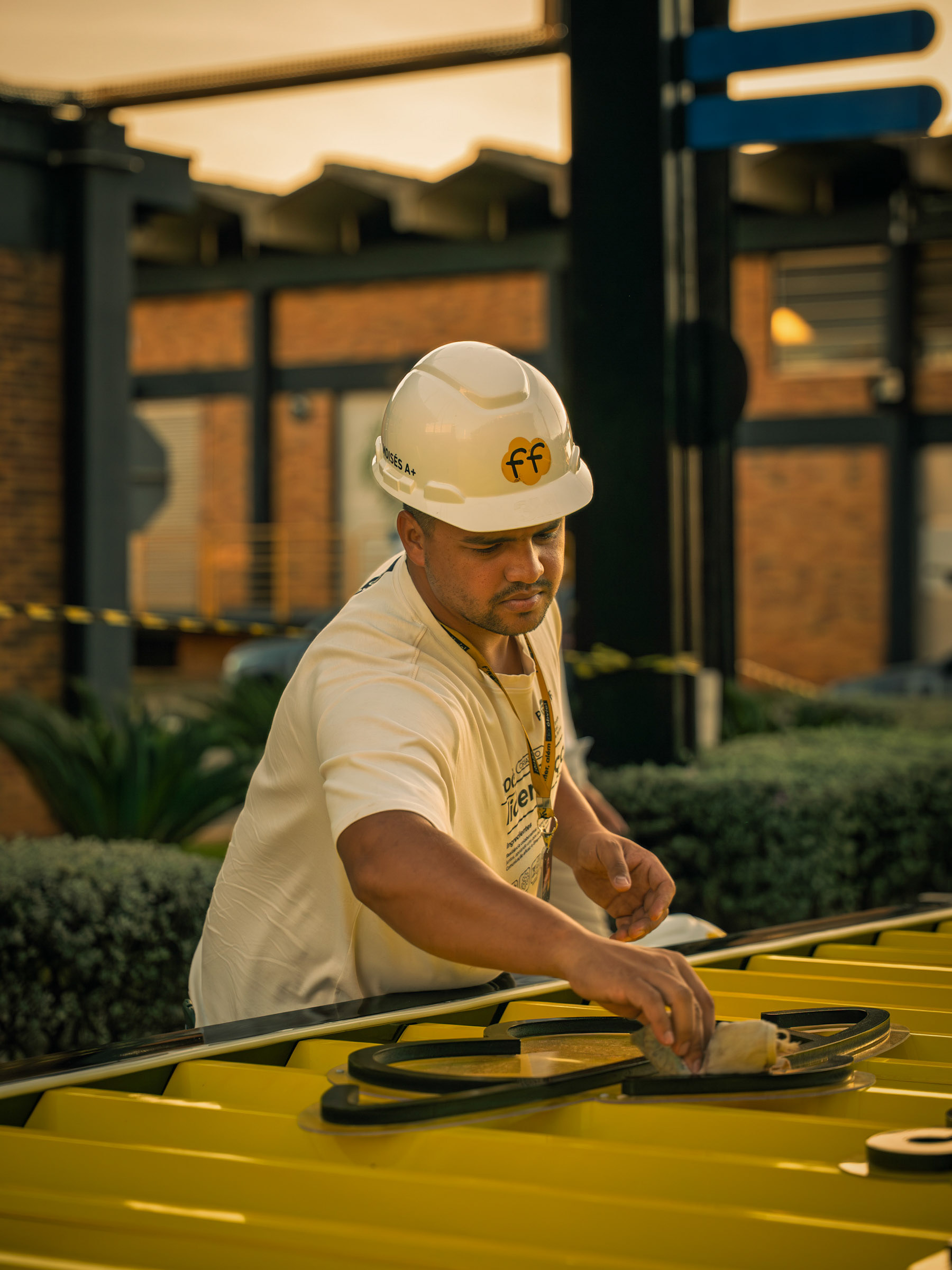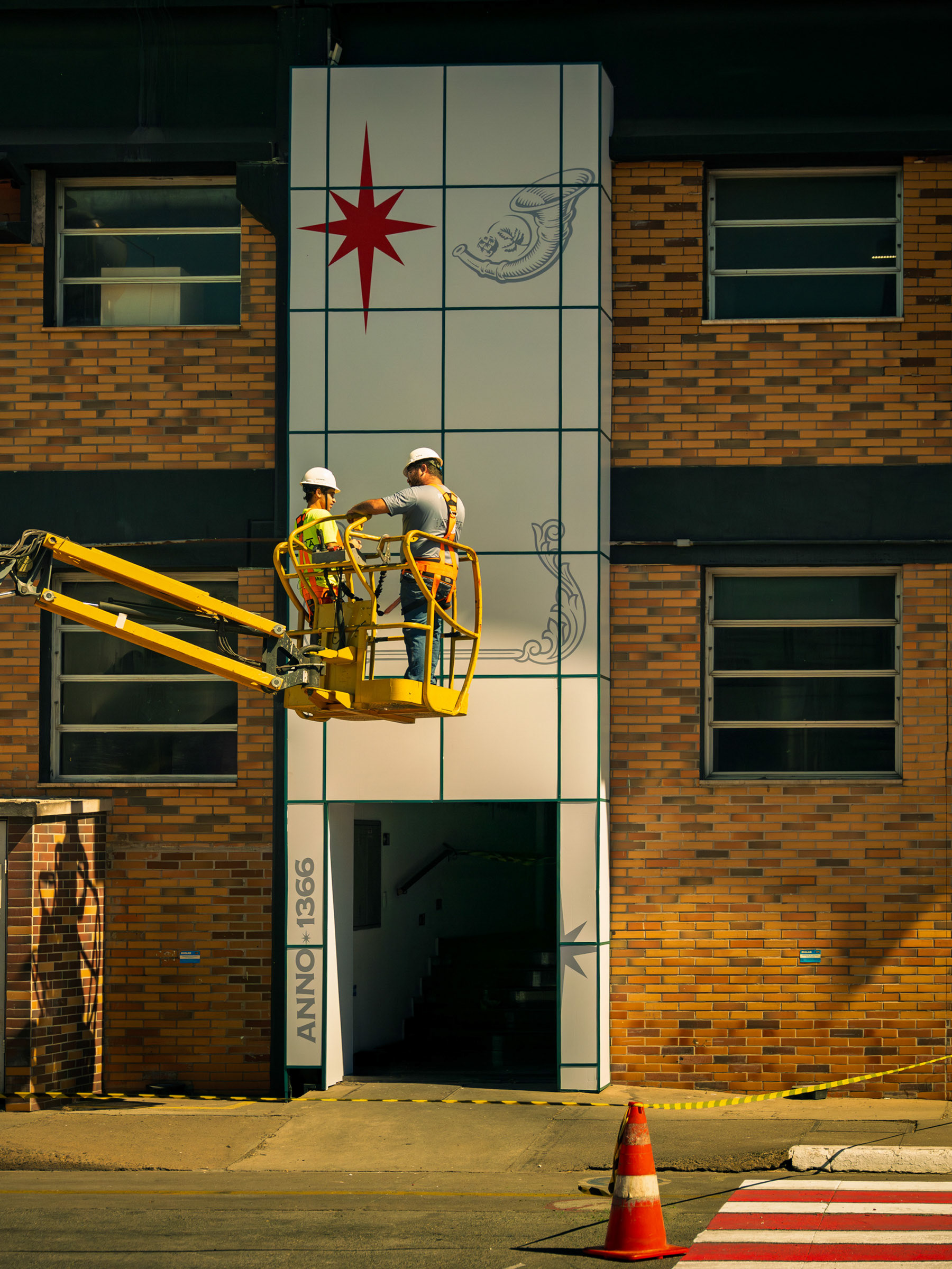 A instalação dos novos portais da Ambev exigiu uma fotografia de cobertura que documentasse não apenas a estrutura final, mas o rigor do processo operacional e a segurança da equipe Piffer em um ambiente industrial de alta exigência. O objetivo era traduzir em imagem a excelência na execução, o domínio da técnica e o profissionalismo do time. A cobertura focou em capturar o ritmo de trabalho e a escala industrial. As fotos utilizam close-ups nos colaboradores, devidamente equipados com EPIs, enfatizando a concentração, o trabalho em equipe e a seriedade da instalação. O uso estratégico da luz natural e dos ângulos altos (plataformas elevatórias) confere um visual robusto e autêntico à narrativa. Foi crucial registrar a manipulação das peças complexas (como as garrafas Stella Artois e Original em ACM e acrílico incolor com impressão invertida) durante o içamento e a fixação. As imagens mostram a aplicação do efeito flutuante com fita de LED nas bordas das garrafas, destacando o know-how da Piffer na união de materiais de alto padrão (ACM, acrílico, LED) em ambientes industriais. Cobertura Industrial que atesta a capacidade de execução da Piffer, demonstrando que a transformação de um portal em uma declaração de marca envolve planejamento, técnica, segurança e uma equipe especializada em lidar com desafios de infraestrutura complexa.