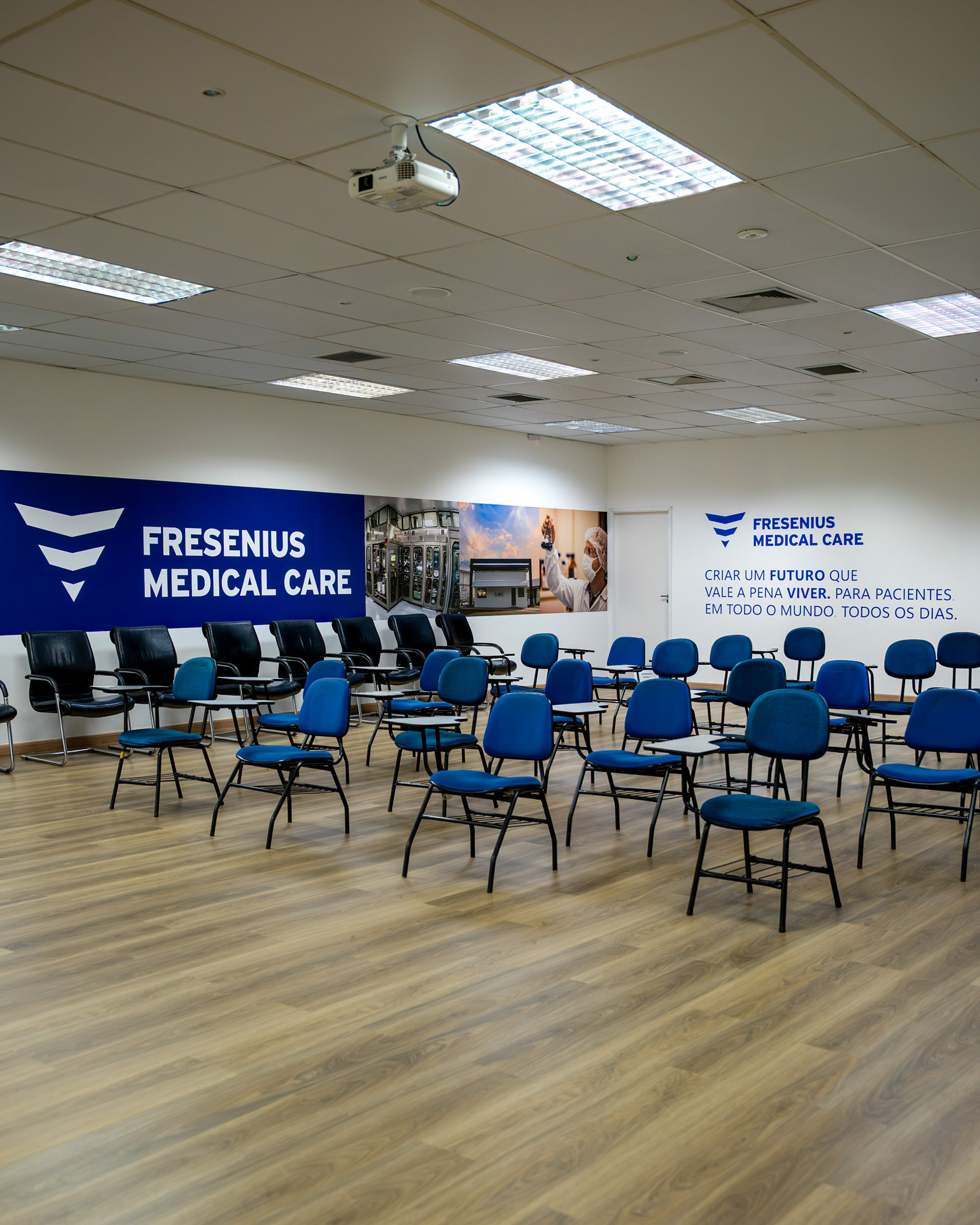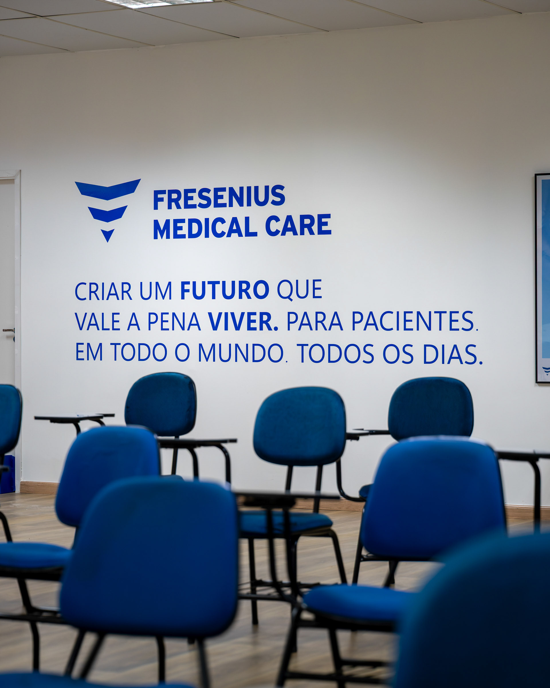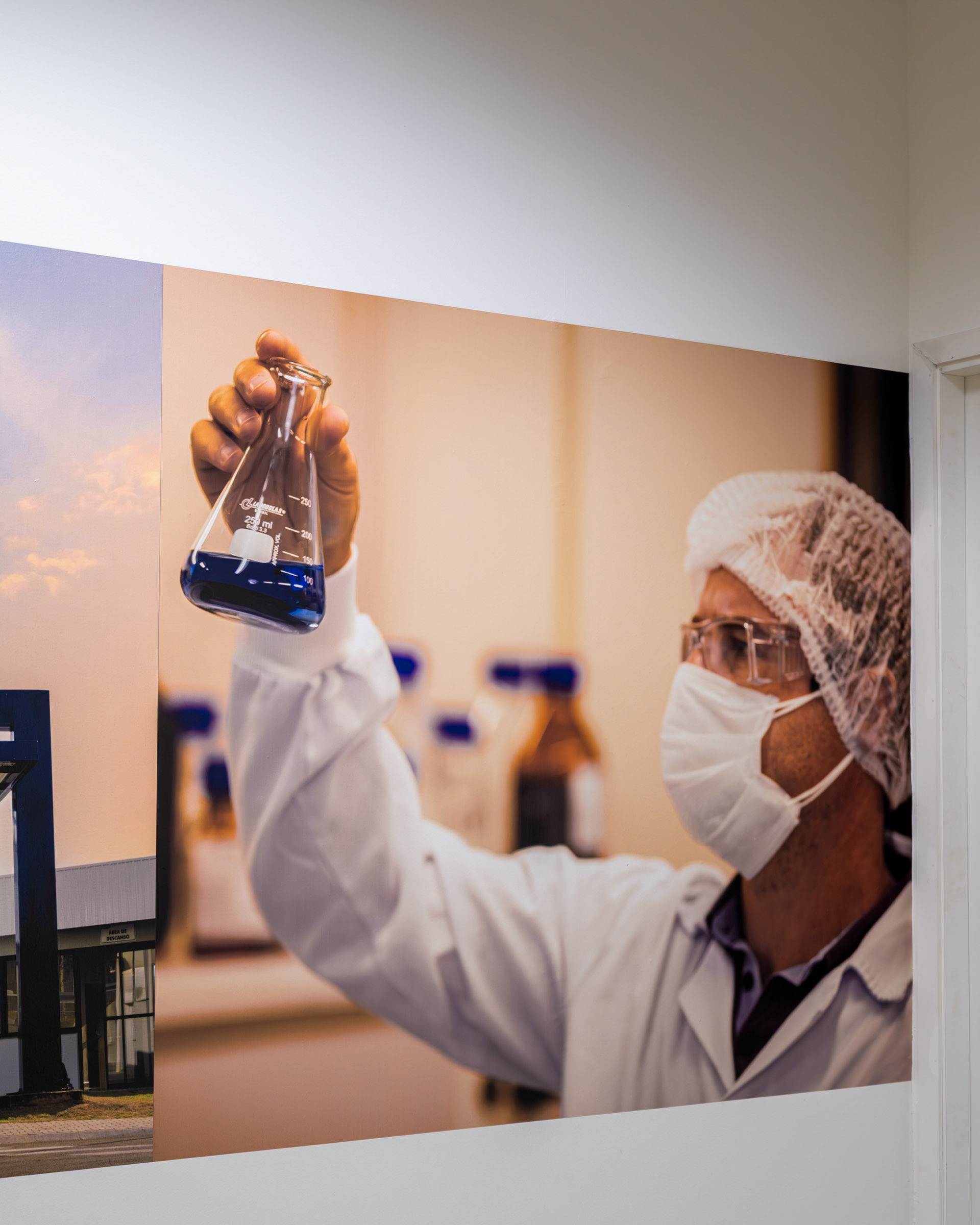 A personalização de ambientes corporativos como a fábrica da Fresenius Medical Care exigiu uma fotografia capaz de ir além da estética, traduzindo a identidade, os valores e a cultura da empresa em cada aplicação. O objetivo era registrar a precisão dos materiais e a fidelidade das cores em ambientes de iluminação controlada. O projeto envolveu a aplicação de diferentes tipos de adesivos, de impressão digital de alta qualidade a adesivo automotivo importado Oracal com recorte eletrônico. Meu trabalho focou em valorizar a excelência no acabamento e a legibilidade imediata das mensagens-chave. Utilizei ângulos que destacam o contraste do azul institucional e o impacto do painel de valores vibrantes (o arco-íris), garantindo que as cores fossem registradas com fidelidade cromática sob a luz interna. As imagens buscam comunicar a seriedade e o profissionalismo da marca, ao mesmo tempo em que destacam a energia injetada nos espaços de treinamento e convivência. Através de composições limpas, mostrei a integração das imagens de pesquisa e tecnologia com o ambiente, reforçando a missão da Fresenius em cada detalhe. A fotografia se torna a prova visual de que a comunicação de marca, quando executada com precisão (da escolha do insumo à aplicação final) e capturada com atenção técnica, consegue reforçar mensagens-chave e alinha os espaços corporativos à essência da marca.