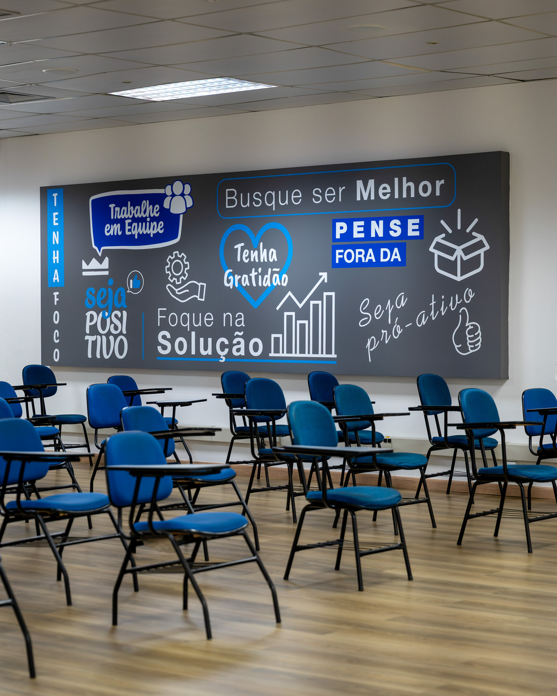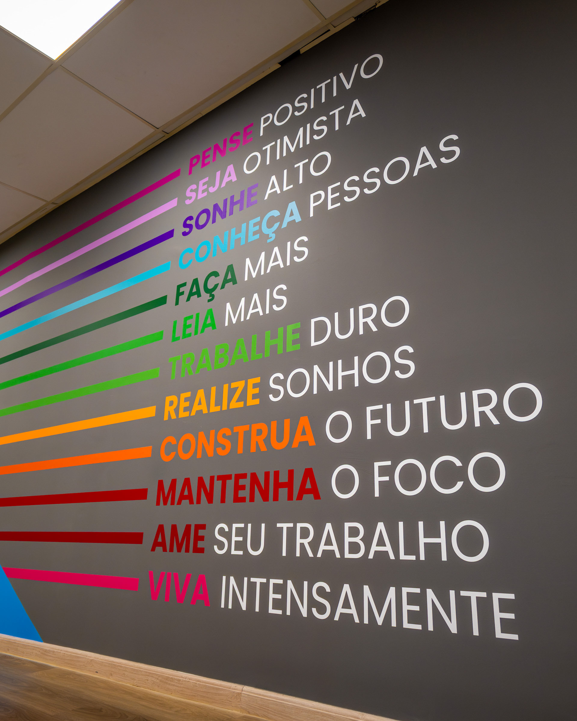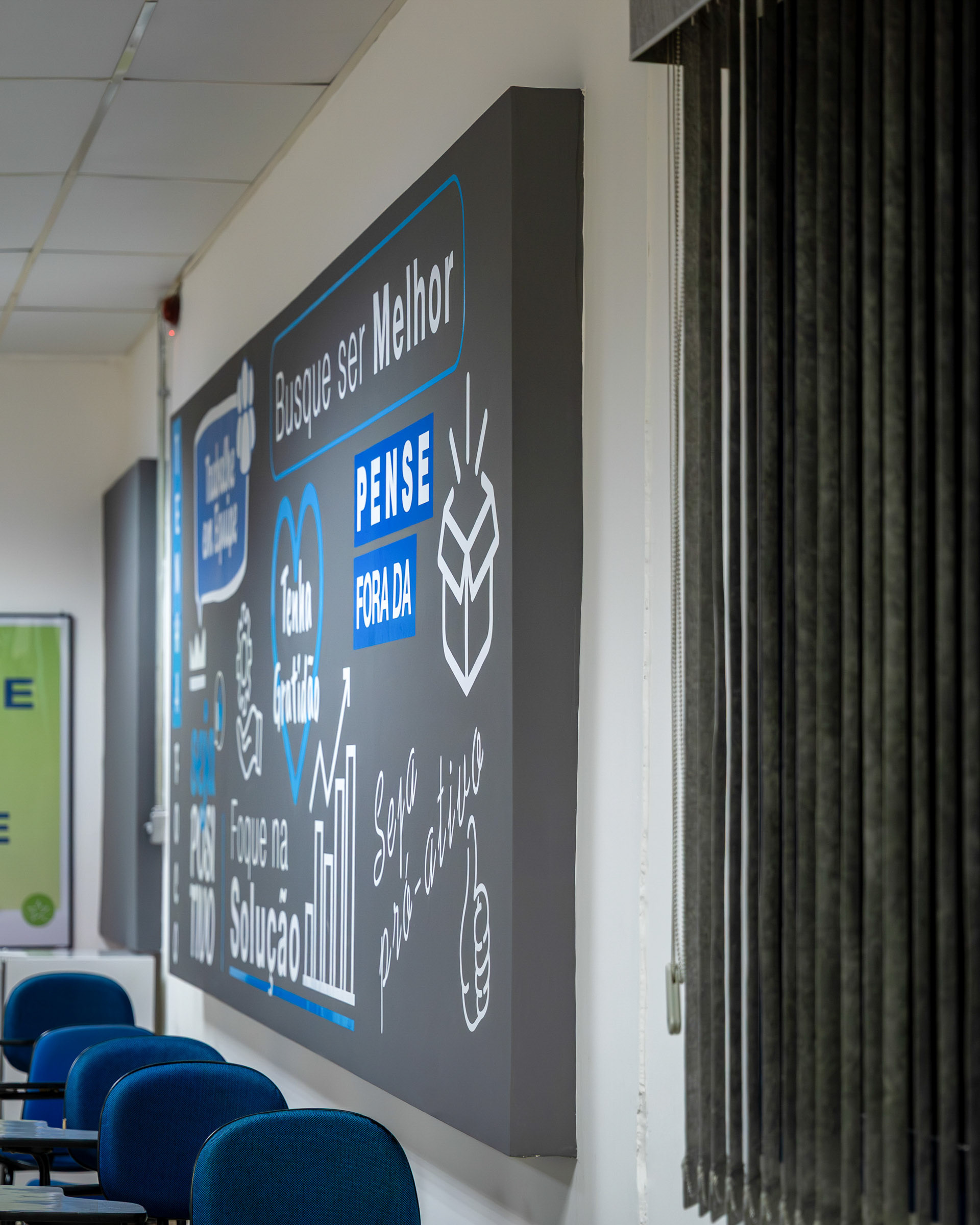 A personalização de ambientes corporativos como a fábrica da Fresenius Medical Care exigiu uma fotografia capaz de ir além da estética, traduzindo a identidade, os valores e a cultura da empresa em cada aplicação. O objetivo era registrar a precisão dos materiais e a fidelidade das cores em ambientes de iluminação controlada. O projeto envolveu a aplicação de diferentes tipos de adesivos, de impressão digital de alta qualidade a adesivo automotivo importado Oracal com recorte eletrônico. Meu trabalho focou em valorizar a excelência no acabamento e a legibilidade imediata das mensagens-chave. Utilizei ângulos que destacam o contraste do azul institucional e o impacto do painel de valores vibrantes (o arco-íris), garantindo que as cores fossem registradas com fidelidade cromática sob a luz interna. As imagens buscam comunicar a seriedade e o profissionalismo da marca, ao mesmo tempo em que destacam a energia injetada nos espaços de treinamento e convivência. Através de composições limpas, mostrei a integração das imagens de pesquisa e tecnologia com o ambiente, reforçando a missão da Fresenius em cada detalhe. A fotografia se torna a prova visual de que a comunicação de marca, quando executada com precisão (da escolha do insumo à aplicação final) e capturada com atenção técnica, consegue reforçar mensagens-chave e alinha os espaços corporativos à essência da marca.