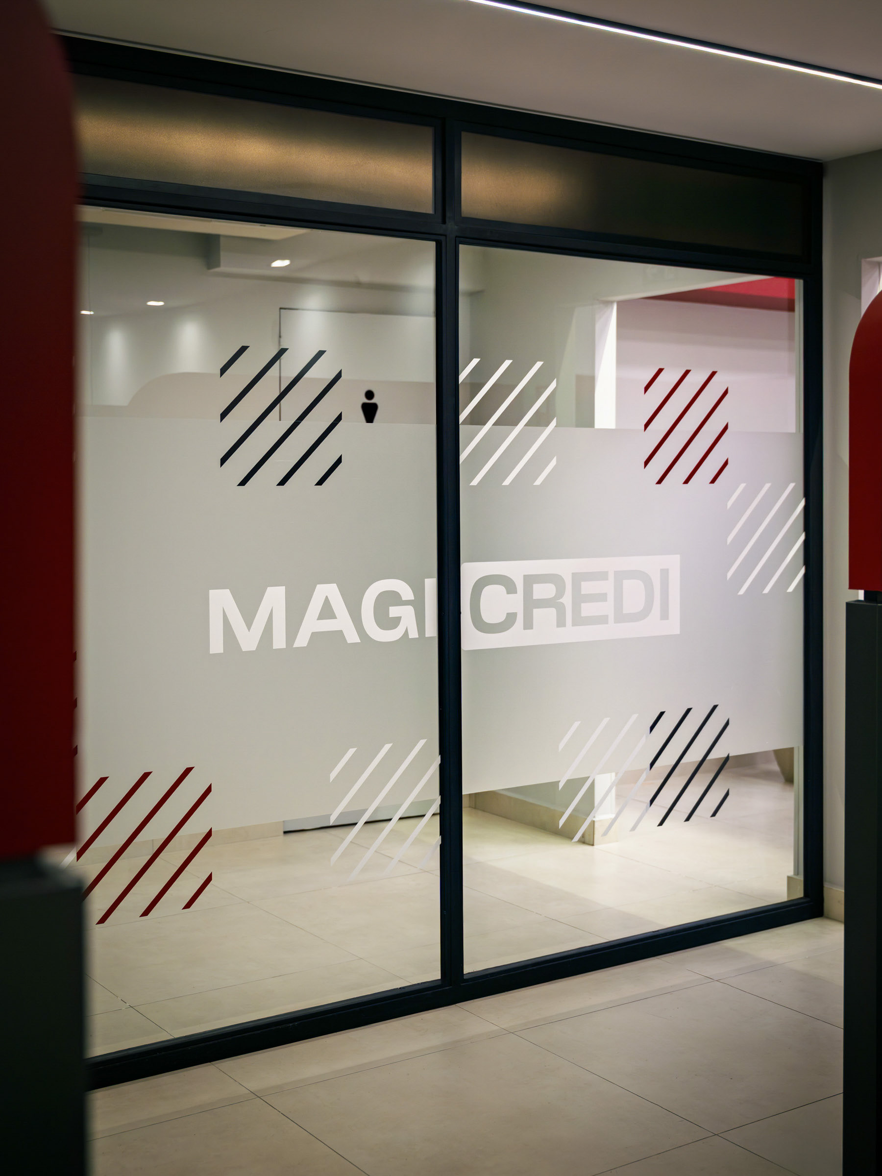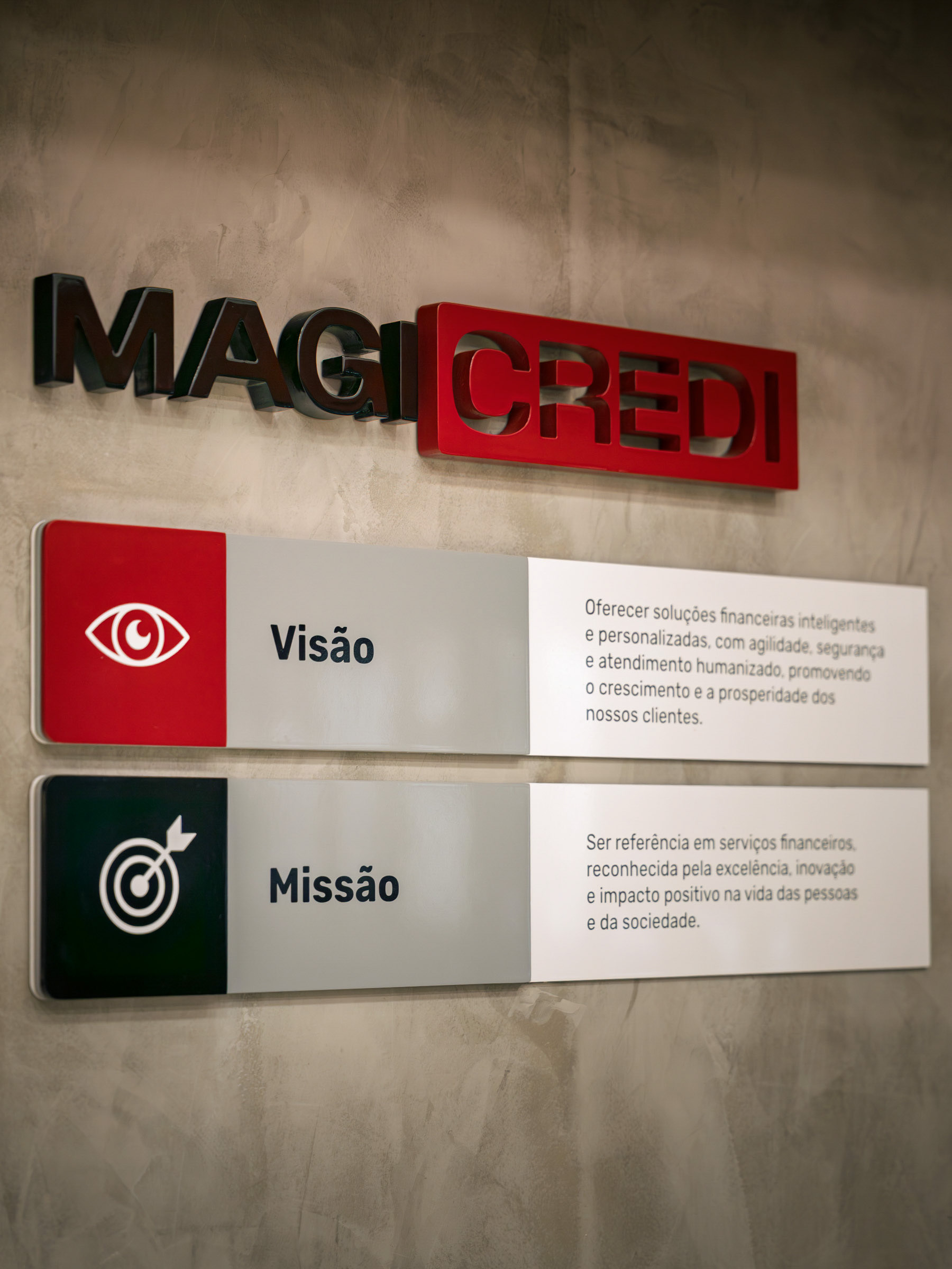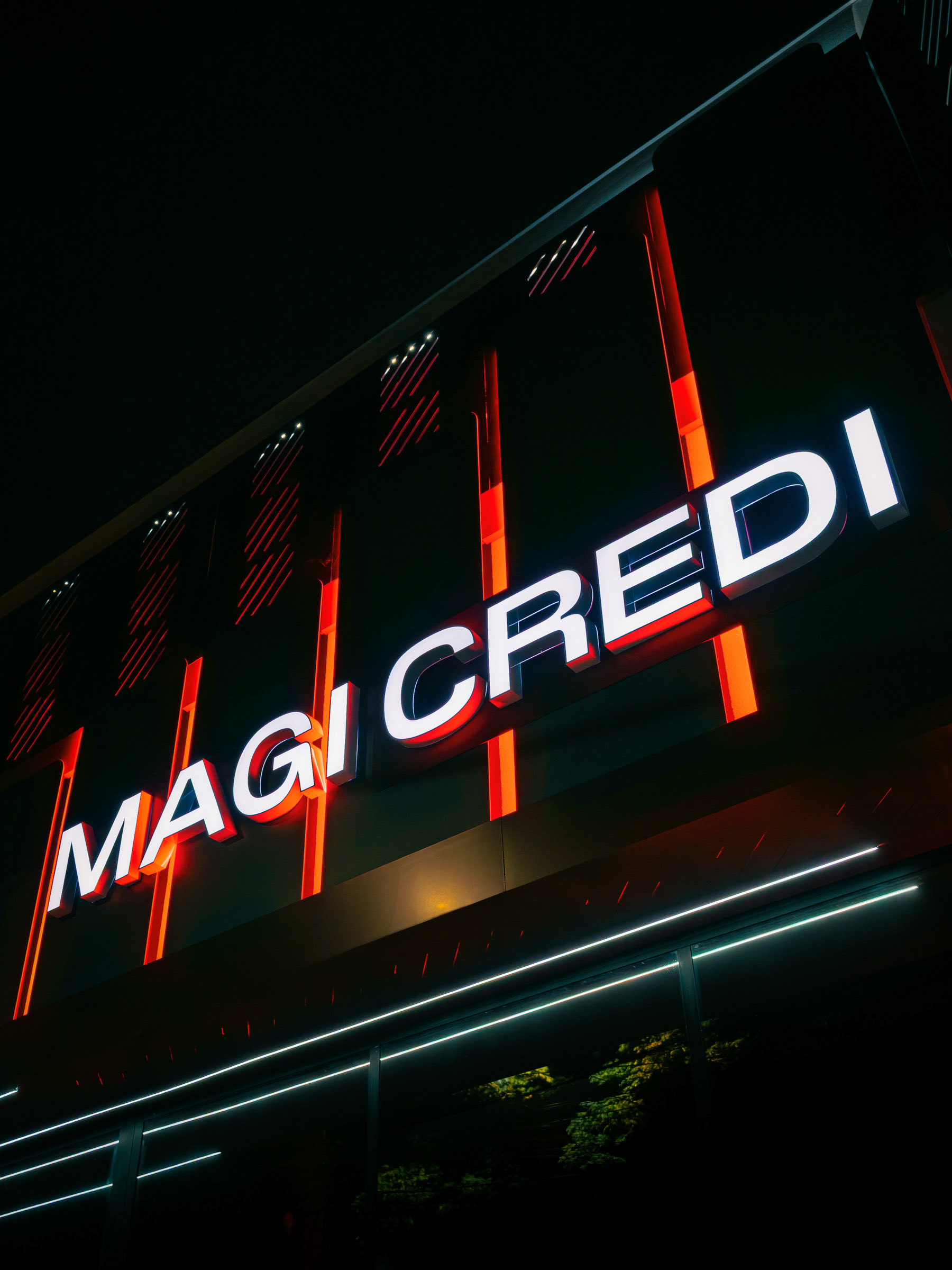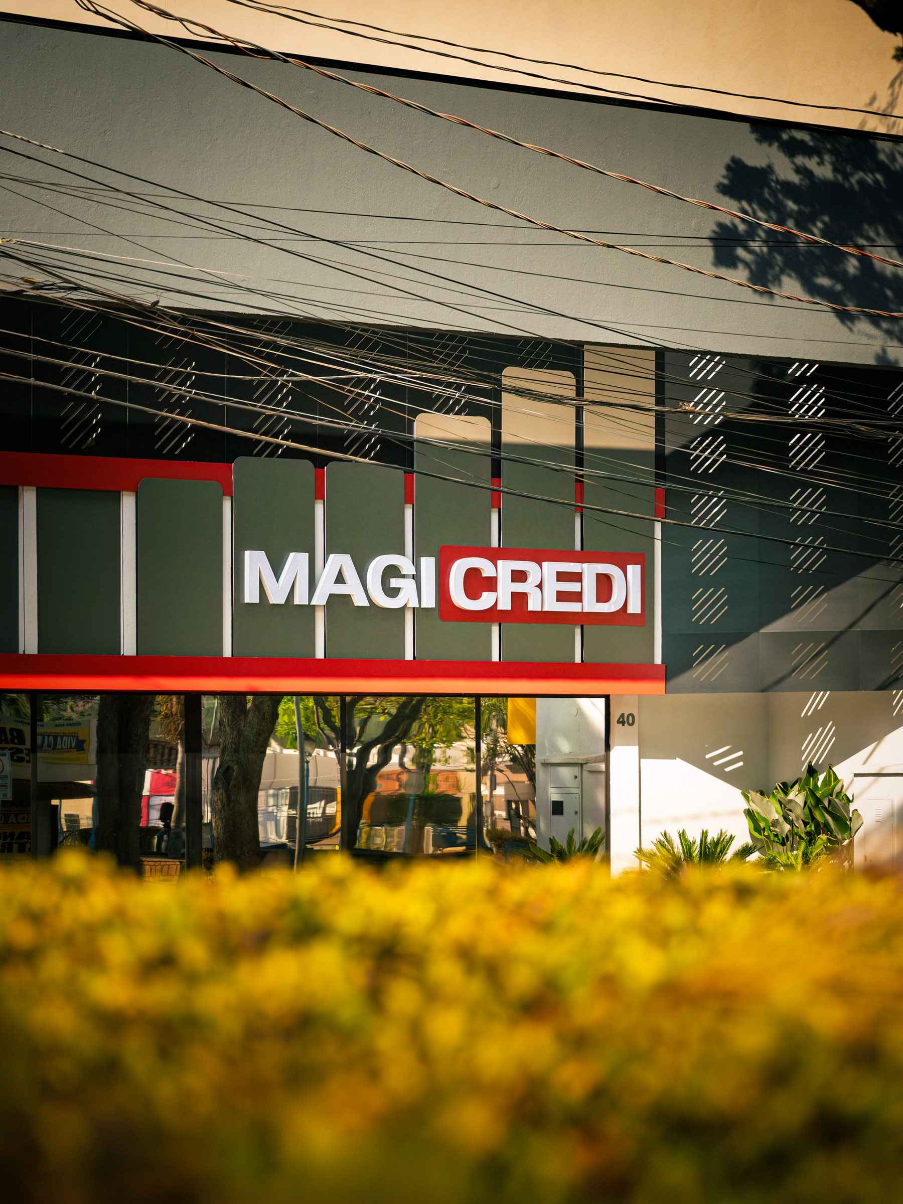 O projeto da Magicredi, desenvolvido pela Piffer, transformou o espaço em um ponto de contato que exala solidez e modernidade. Meu papel foi ir além do registro de fachada, buscando traduzir em imagem o conceito de crescimento, dinamismo e confiança que o design arquitetônico e o visual interno buscam comunicar. O projeto utilizou painéis em ACM com um padrão de recortes angulares que remetem a gráficos em ascensão. Na captura diurna, o desafio foi valorizar o brilho e a textura desses revestimentos sob a luz natural, controlando os reflexos da vitrine. À noite, as fitas de LED vermelhas embutidas criam um poderoso efeito backlight; utilizei exposições controladas para garantir que o LED brilhasse com personalidade, sem "estourar" o tom, enquanto o reflexo dramático no piso e na rua completava a cena com um impacto visual marcante. No interior, a fotografia focou em traduzir a organização, o profissionalismo e o acolhimento do ambiente. A consistência da marca é registrada nos painéis informativos de Visão e Valores, nos detalhes em madeira e nas repetições de elementos de design (como as cabines de atendimento). Foi crucial o controle de luz ambiente para destacar a legibilidade dos adesivos jateados e a textura do concreto aparente, assegurando que o vermelho vibrante da marca fosse transmitido com precisão. Cada imagem é uma tentativa de capturar o diálogo entre a precisão dos materiais e a identidade de marca, mostrando como o design de comunicação visual, quando bem executado e registrado, transcende o óbvio e reforça os valores da empresa em todos os seus pontos de contato.