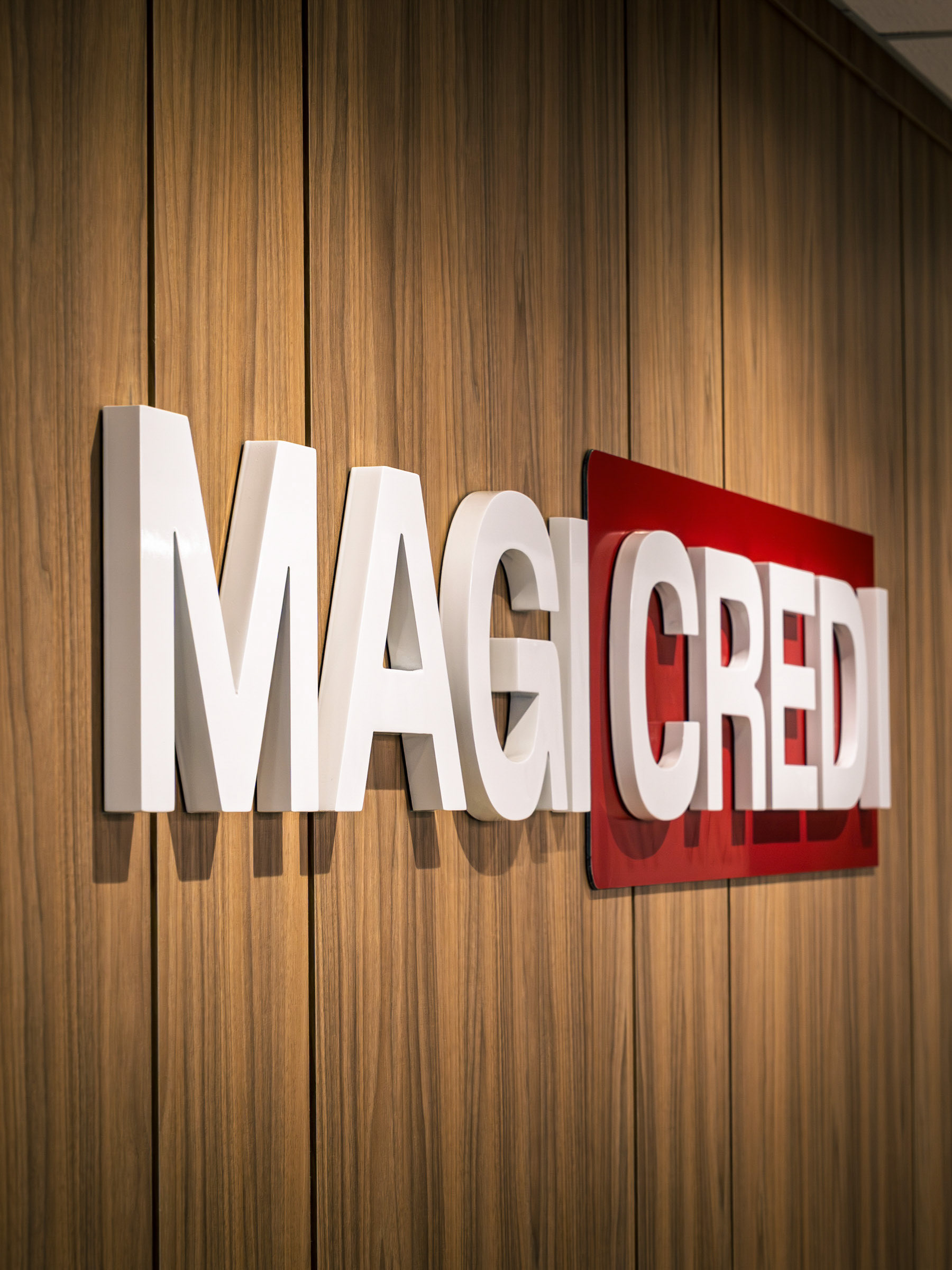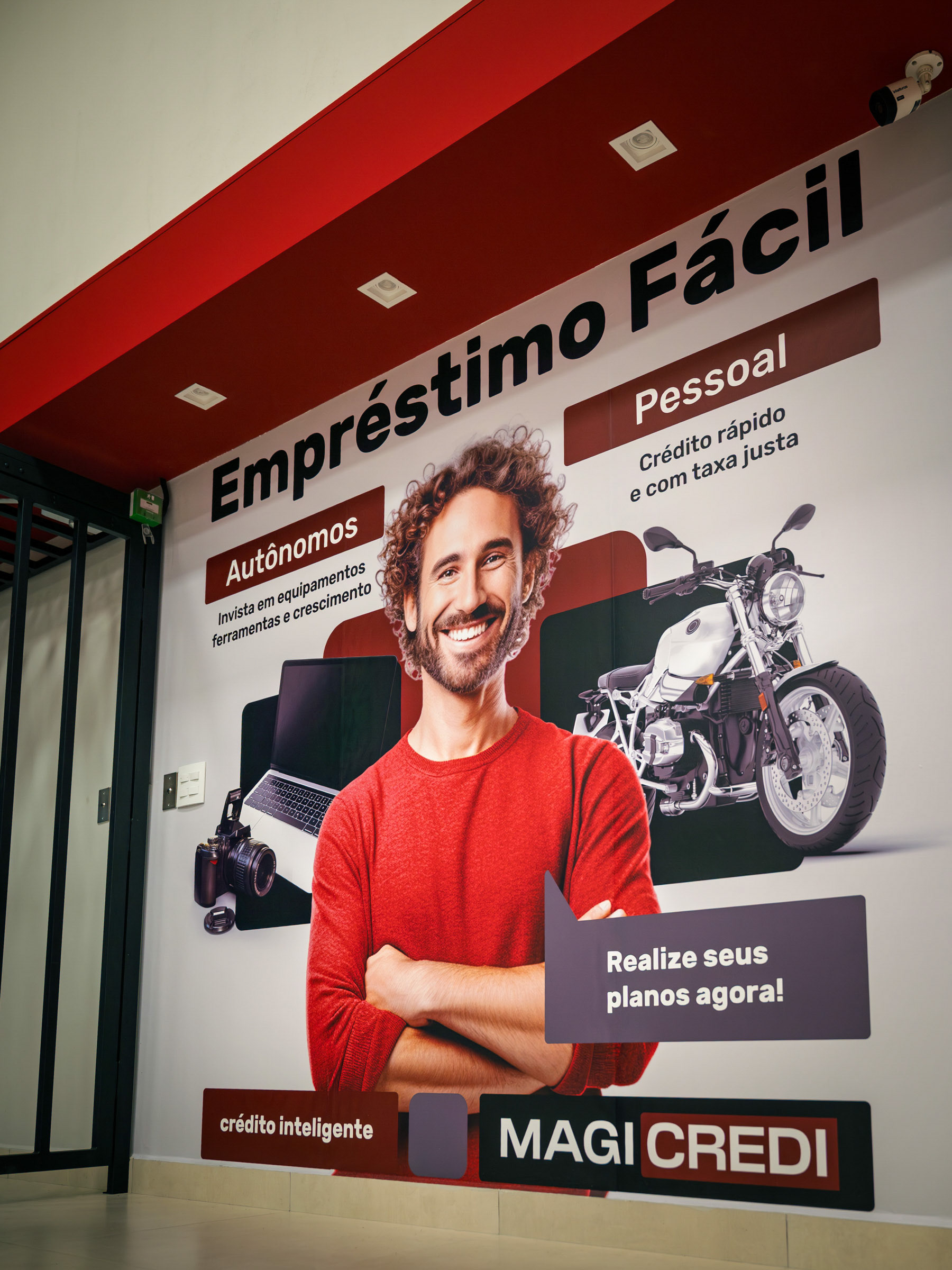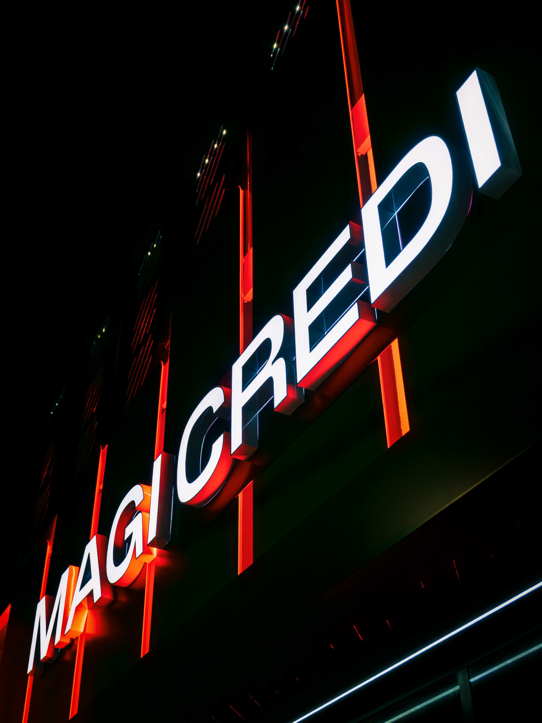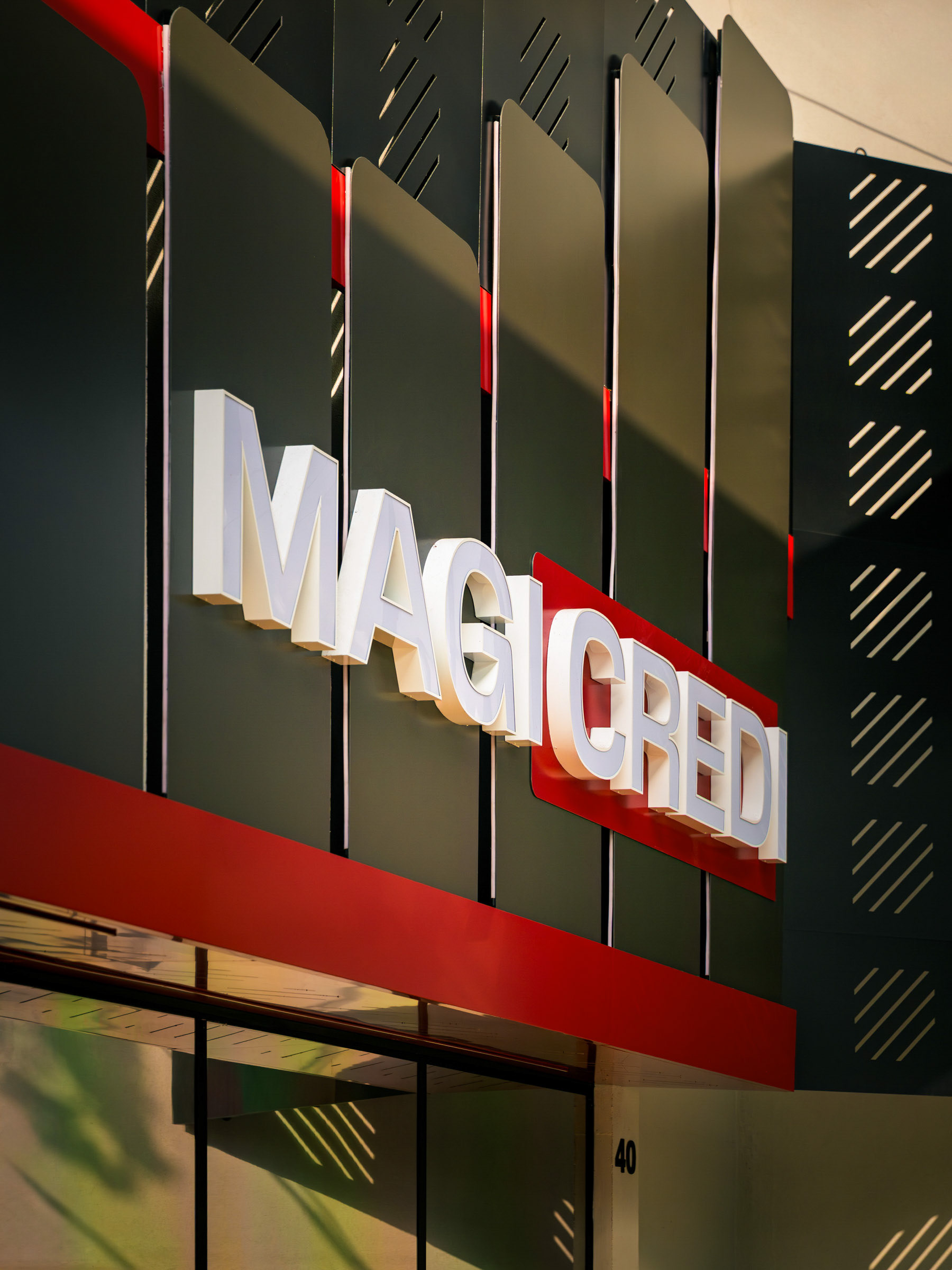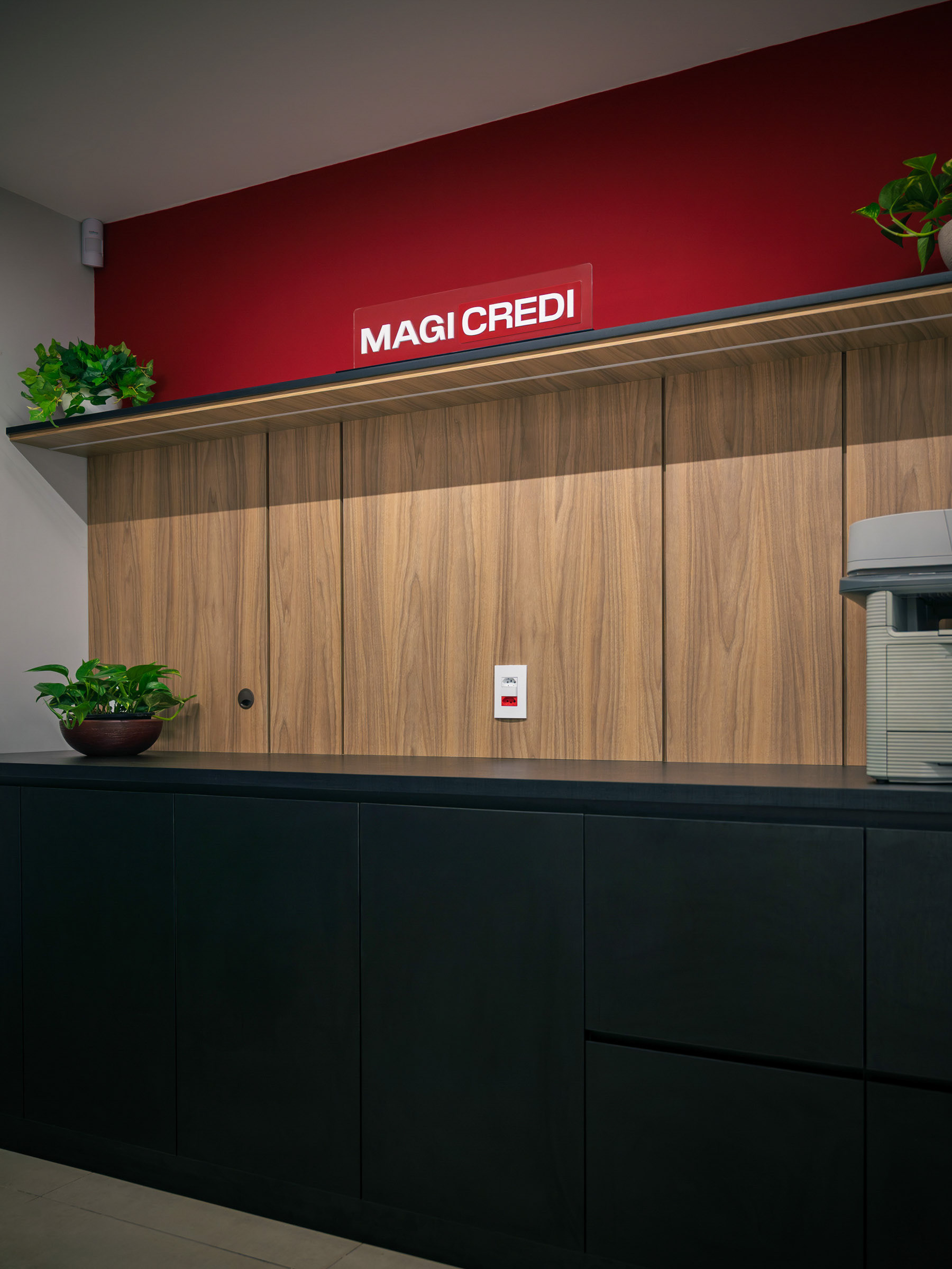 O projeto da Magicredi, desenvolvido pela Piffer, transformou o espaço em um ponto de contato que exala solidez e modernidade. Meu papel foi ir além do registro de fachada, buscando traduzir em imagem o conceito de crescimento, dinamismo e confiança que o design arquitetônico e o visual interno buscam comunicar. O projeto utilizou painéis em ACM com um padrão de recortes angulares que remetem a gráficos em ascensão. Na captura diurna, o desafio foi valorizar o brilho e a textura desses revestimentos sob a luz natural, controlando os reflexos da vitrine. À noite, as fitas de LED vermelhas embutidas criam um poderoso efeito backlight; utilizei exposições controladas para garantir que o LED brilhasse com personalidade, sem "estourar" o tom, enquanto o reflexo dramático no piso e na rua completava a cena com um impacto visual marcante. No interior, a fotografia focou em traduzir a organização, o profissionalismo e o acolhimento do ambiente. A consistência da marca é registrada nos painéis informativos de Visão e Valores, nos detalhes em madeira e nas repetições de elementos de design (como as cabines de atendimento). Foi crucial o controle de luz ambiente para destacar a legibilidade dos adesivos jateados e a textura do concreto aparente, assegurando que o vermelho vibrante da marca fosse transmitido com precisão. Cada imagem é uma tentativa de capturar o diálogo entre a precisão dos materiais e a identidade de marca, mostrando como o design de comunicação visual, quando bem executado e registrado, transcende o óbvio e reforça os valores da empresa em todos os seus pontos de contato.