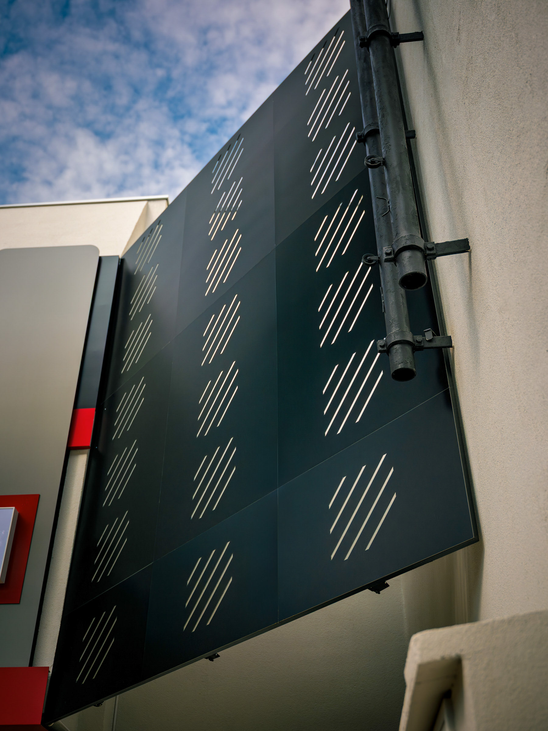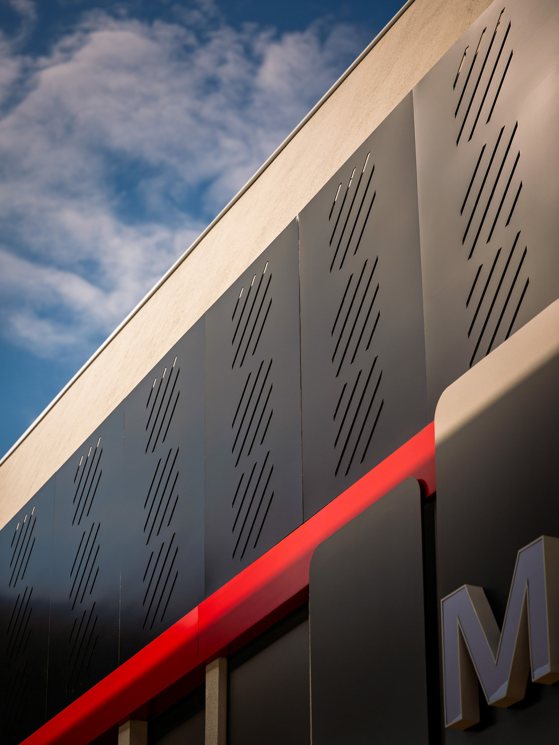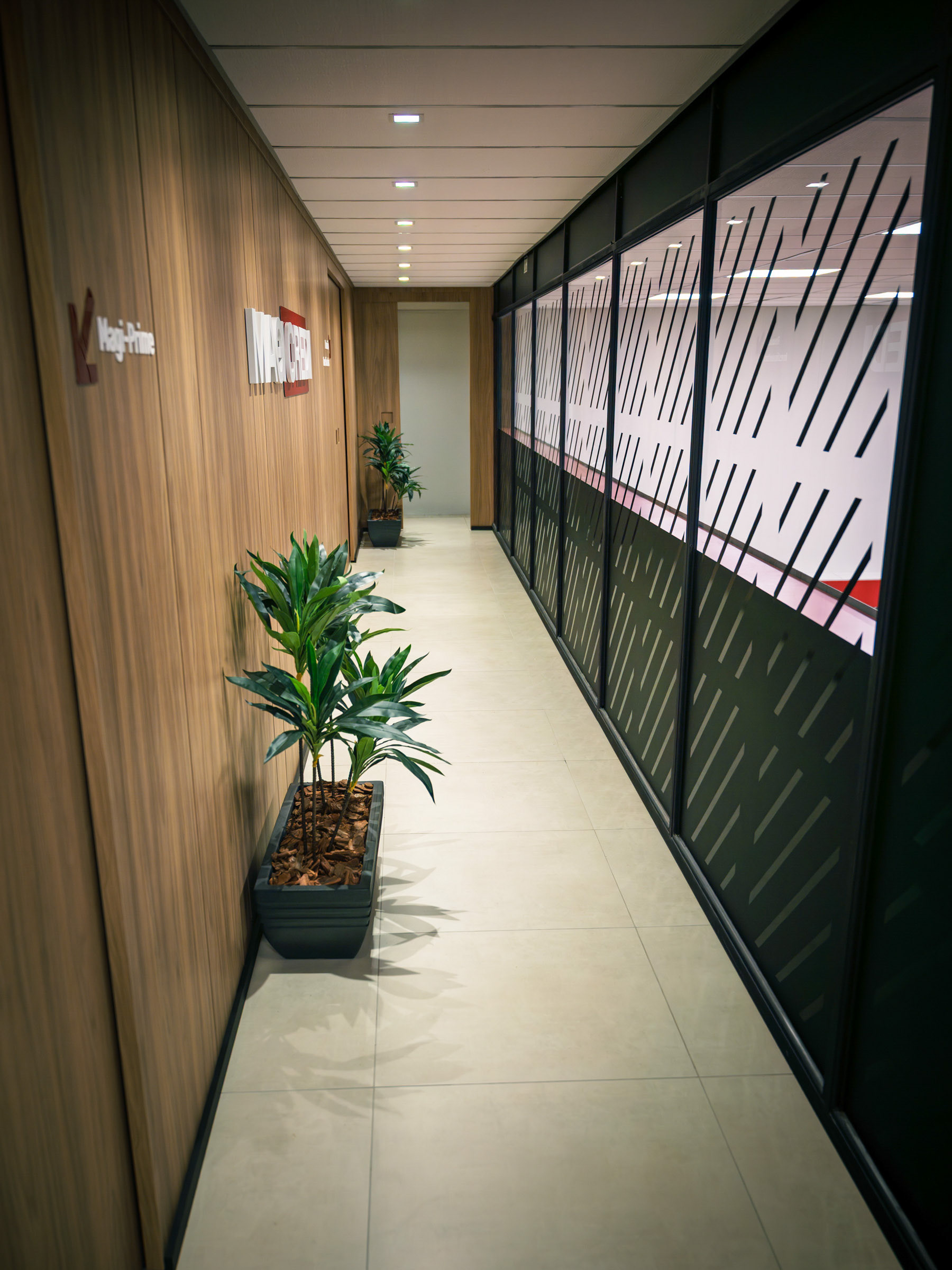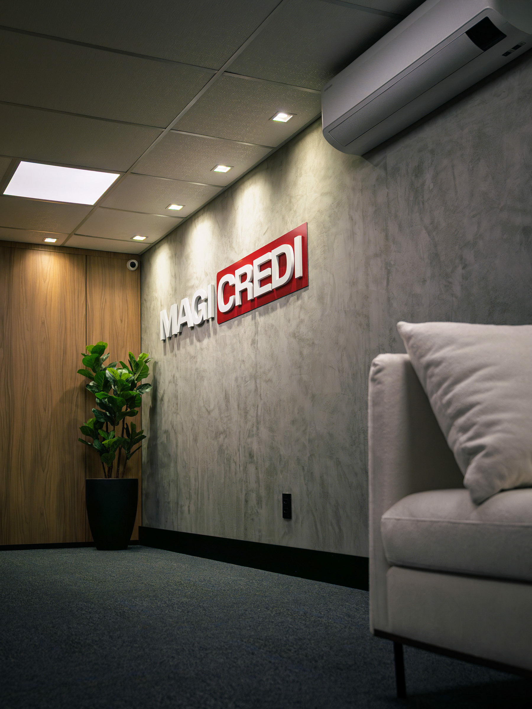 O projeto da Magicredi, desenvolvido pela Piffer, transformou o espaço em um ponto de contato que exala solidez e modernidade. Meu papel foi ir além do registro de fachada, buscando traduzir em imagem o conceito de crescimento, dinamismo e confiança que o design arquitetônico e o visual interno buscam comunicar. O projeto utilizou painéis em ACM com um padrão de recortes angulares que remetem a gráficos em ascensão. Na captura diurna, o desafio foi valorizar o brilho e a textura desses revestimentos sob a luz natural, controlando os reflexos da vitrine. À noite, as fitas de LED vermelhas embutidas criam um poderoso efeito backlight; utilizei exposições controladas para garantir que o LED brilhasse com personalidade, sem "estourar" o tom, enquanto o reflexo dramático no piso e na rua completava a cena com um impacto visual marcante. No interior, a fotografia focou em traduzir a organização, o profissionalismo e o acolhimento do ambiente. A consistência da marca é registrada nos painéis informativos de Visão e Valores, nos detalhes em madeira e nas repetições de elementos de design (como as cabines de atendimento). Foi crucial o controle de luz ambiente para destacar a legibilidade dos adesivos jateados e a textura do concreto aparente, assegurando que o vermelho vibrante da marca fosse transmitido com precisão. Cada imagem é uma tentativa de capturar o diálogo entre a precisão dos materiais e a identidade de marca, mostrando como o design de comunicação visual, quando bem executado e registrado, transcende o óbvio e reforça os valores da empresa em todos os seus pontos de contato.
