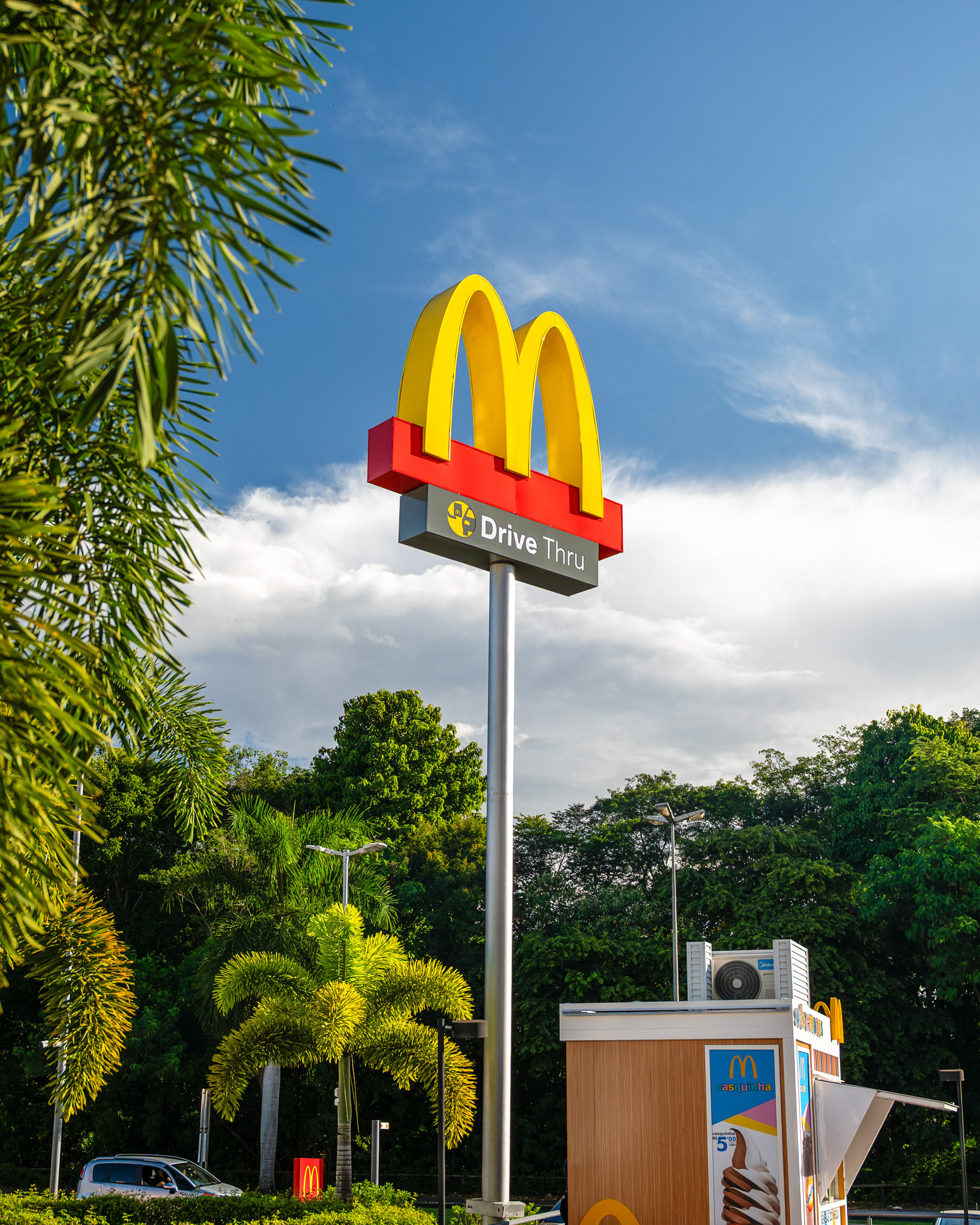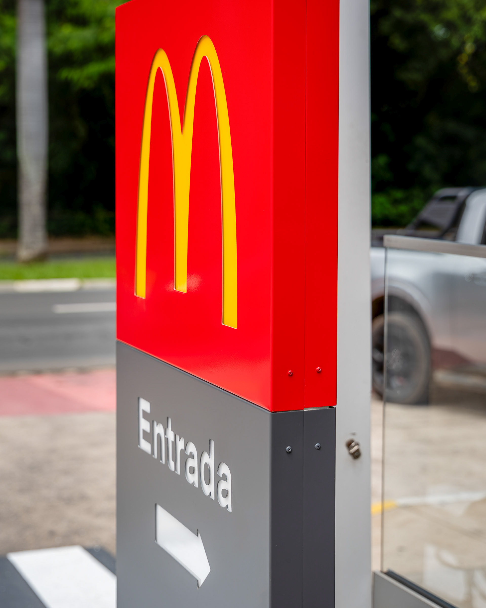 Este projeto de revitalização da loja McDonald’s em Jaguariúna foi um trabalho de alta exigência, focado em manter a identidade global da marca em todos os elementos externos. O desafio da Piffer era a fidelidade de cor: garantir que o padrão de cores definido pelo manual global (Pantone) fosse replicado com precisão em novos acrílicos, LEDs e adesivos. Meu papel foi traduzir essa entrega em imagens que comunicassem a sensação de renovação e a fidelidade das cores vivas. O desafio fotográfico foi trabalhar com elementos de altíssima saturação (o vermelho icônico e o amarelo dos arcos) sob luz solar intensa, o que facilmente levaria a reflexos e cores estouradas. Busquei composições limpas e uma luz que reforçasse a textura e a profundidade dos novos acabamentos (adesivo automotivo importado Oracal e novos acrílicos). A ideia foi encontrar um ponto de equilíbrio que deixasse as cores vivas e vibrantes, mas sem exagerar na saturação, garantindo a presença do vermelho característico da marca. O álbum também destaca a nova estrutura da central de abastecimento para carros elétricos (EDP), documentando a aplicação do adesivo de impressão digital em alta resolução e o acabamento em painel de acrílico. No final, o objetivo foi simples: mostrar a precisão do trabalho, o impacto visual da loja depois da revitalização e a capacidade da Piffer em atender ao rigor de uma marca de escala mundial.