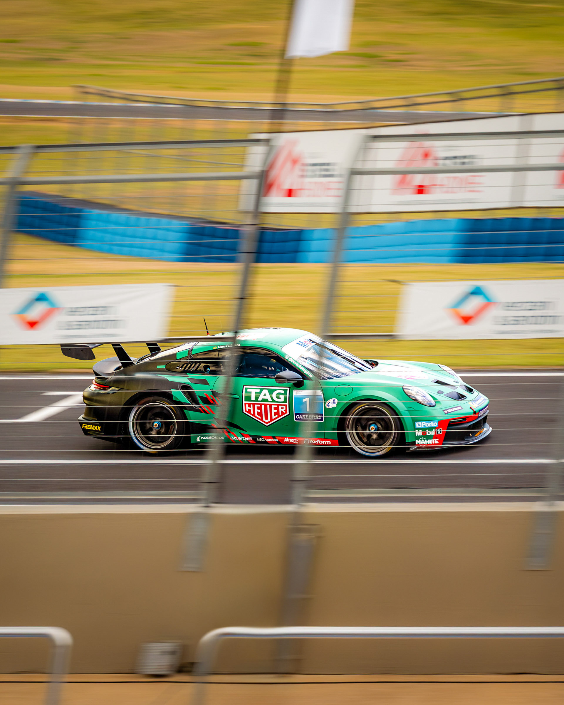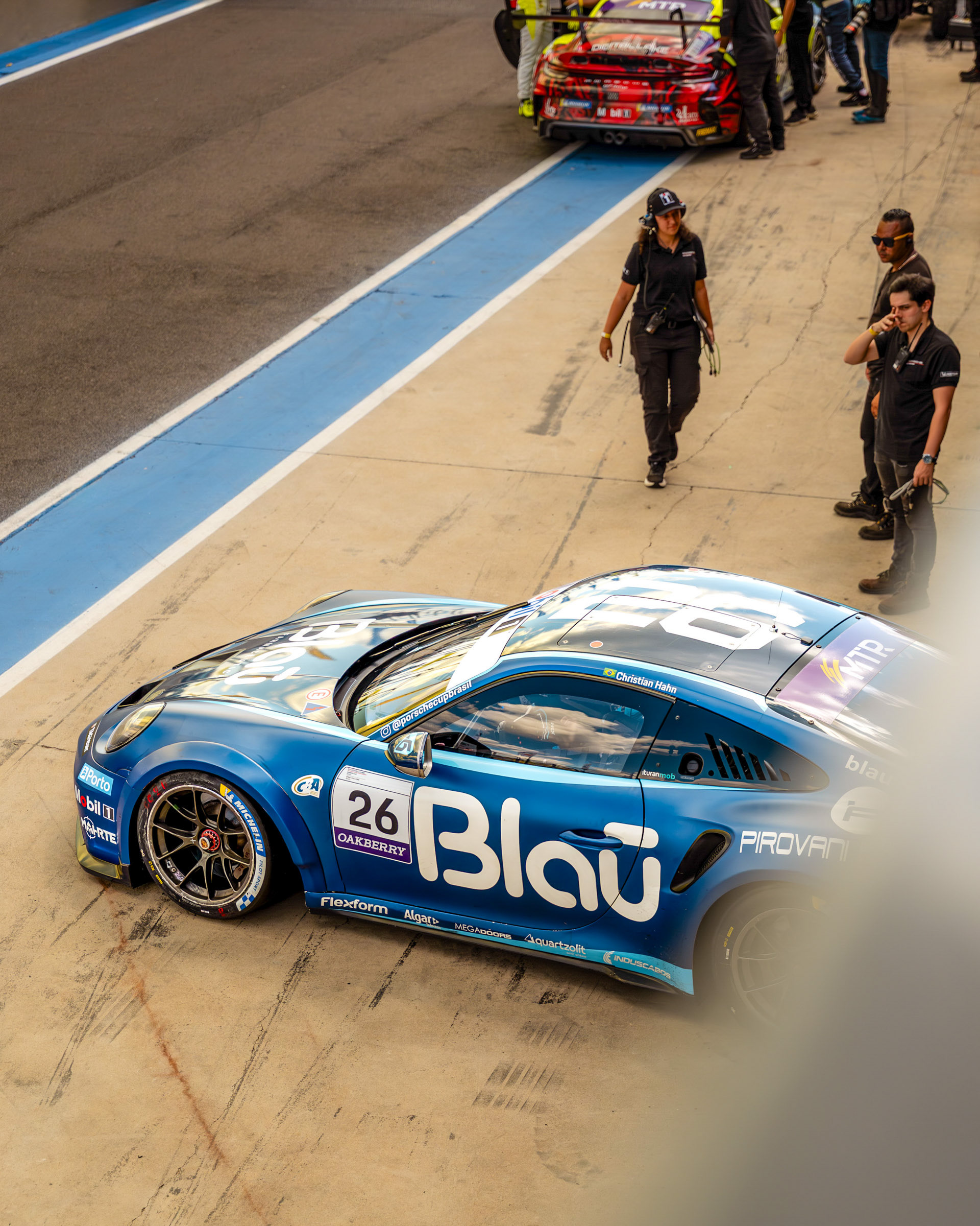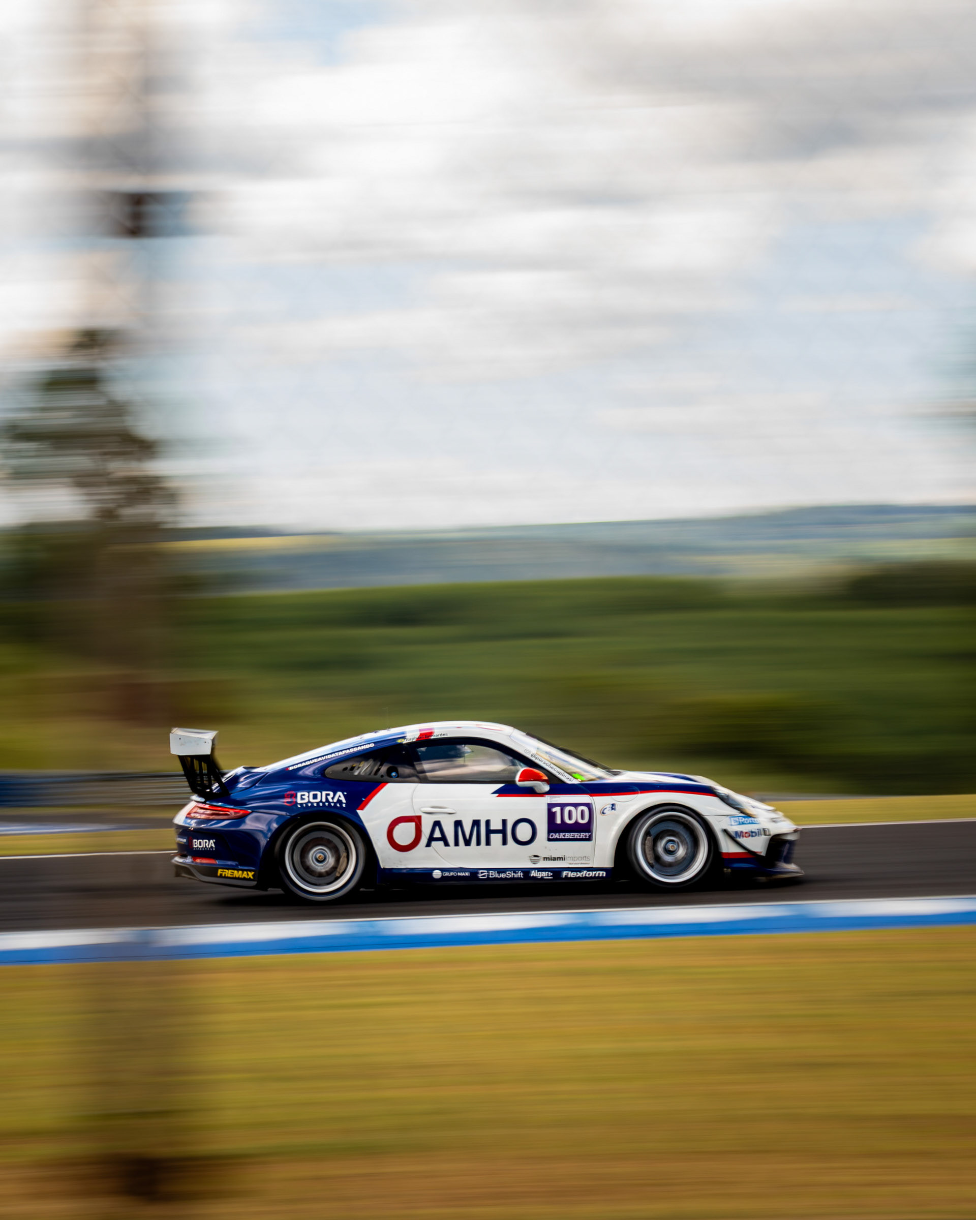 Um retrato de automobilismo que opera no eixo curioso entre precisão e sensibilidade. A técnica de panning (arrasto) não é um acaso, mas uma decisão de coerência para traduzir a presença e a performance do Porsche. O veículo azul é o ponto de verdade e foco, enquanto o fundo se dissolve em faixas de cor, criando um ritmo visual que imita a velocidade. Este contraste entre o objeto congelado e o borrão em movimento é a tradução mais direta da adrenalina da pista, comunicada sem excesso de formalidade. É uma foto que cumpre o objetivo de amarrar a ideia da alta performance, com o olho treinado para o detalhe do movimento exato.